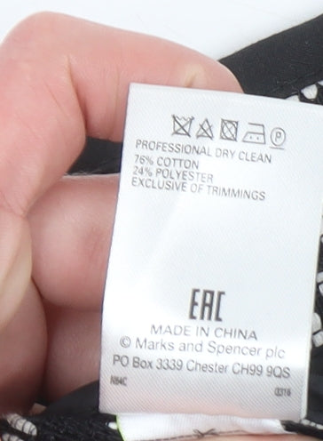 Step into stylish comfort with this striking Marks and Spencer women’s black and white geometric knit cardigan. Expertly crafted from a soft and durable cotton-polyester blend, this refined piece brings both warmth and sophistication to your wardrobe. The cardigan features a beautiful geometric woven pattern in black and white tones, offering a modern twist on a classic aesthetic. Designed with a flattering round neckline and long sleeves, this cardigan provides an effortless silhouette perfect for layering over dresses, tops, or workwear outfits. Made in a medium-weight knit with a tight-knit texture, it ensures comfort and warmth, making it suitable for those transitional autumn and winter days. The cotton composition allows breathability, while the polyester blend enhances durability and helps maintain the garment’s elegant structure over time. The piece closes open front style, giving it a relaxed, versatile finish that complements both casual and dressier looks. This cardigan’s professional dry-clean finish ensures a polished and long-lasting appeal. Ideal for pairing with slim jeans, tailored trousers, or skirts, it’s an effortlessly chic addition for everyday wear or office layering. The geometric design and refined trim detailing add sophistication without overpowering your outfit. In excellent pre-owned condition with no visible defects, it maintains its original shape and colour beautifully. Whether worn for business, casual weekends, or workwear layering, this jumper-style cardigan offers practicality and elegance in one. A must-have statement piece for those who appreciate timeless patterns and contemporary comfort. Measurements correspond to a UK size 8, making it a great fit for those seeking a tailored yet comfortable silhouette.