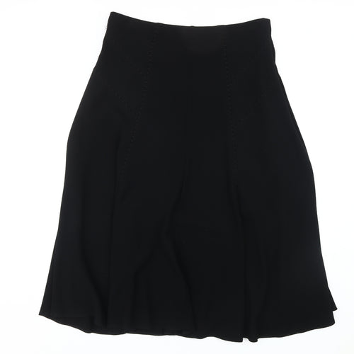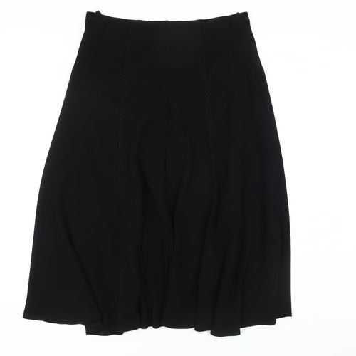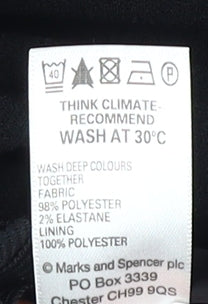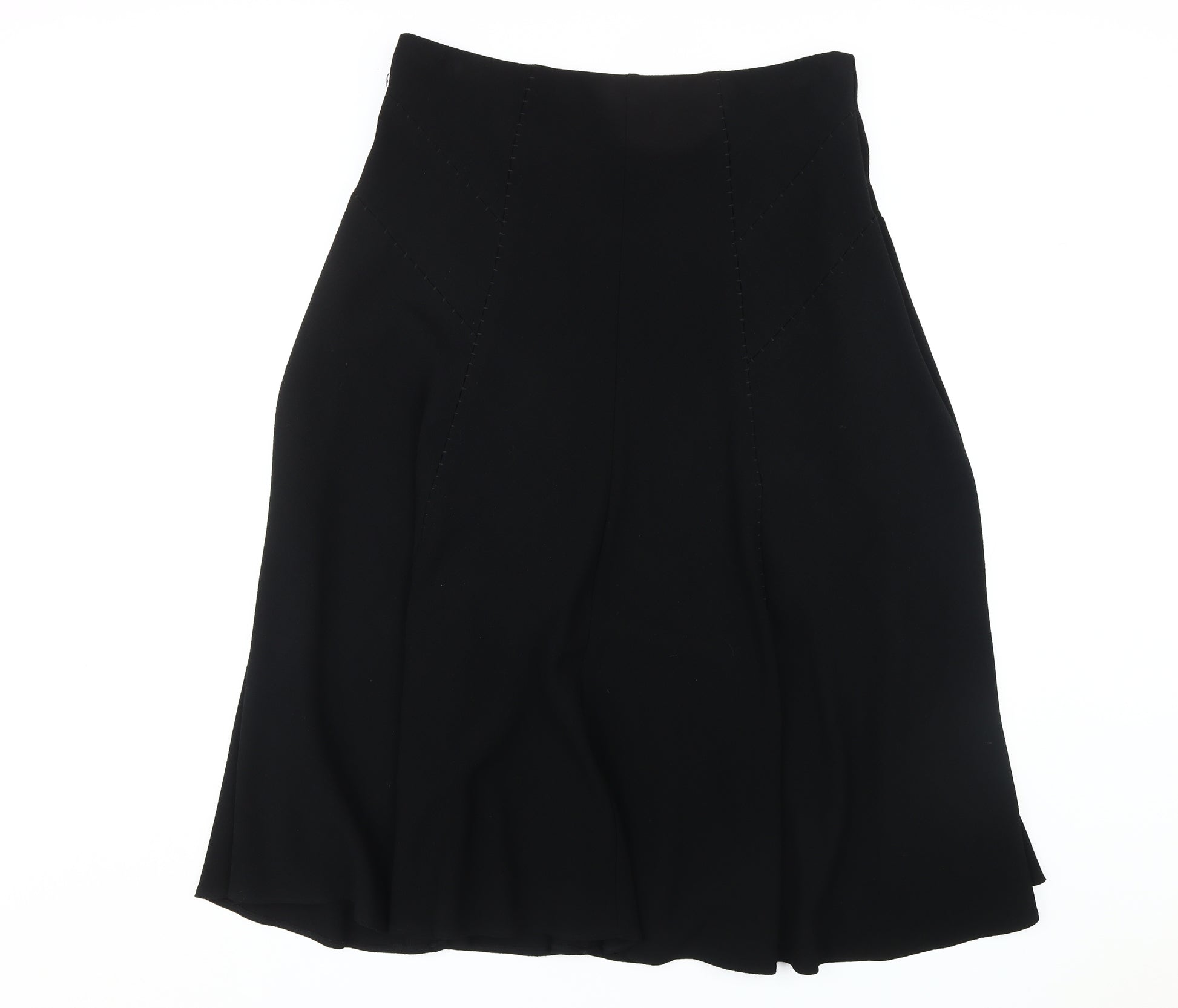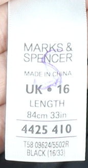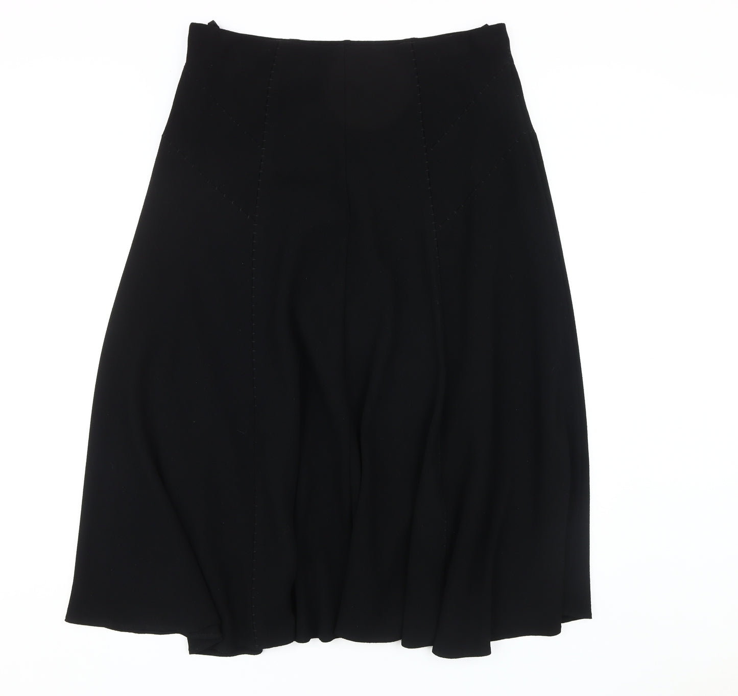 Discover the elegance of this Marks and Spencer Women’s Flare Skirt, a perfect blend of style and comfort. Crafted from a smooth and flexible polyester-elastane mix, this black midi skirt offers an effortlessly chic fit. Designed with a flattering flare style, it falls gracefully to create a chic silhouette that is both stylish and versatile.The midi length and classic black hue make it ideal for various occasions, whether you are heading to the office or enjoying a casual day out. Its mid-rise and zip closure ensure a snug and secure fit, enhancing overall comfort. Pair this versatile piece with your favourite blouse and heels for a polished office look, or dress it down with a casual top for a simple, elegant ensemble.Machine washable for easy care, this skirt maintains its quality over time, ensuring that you always step out in style. With a sleek design and thoughtful construction, it's a must-have addition to any wardrobe. Available in size 16, it caters to regular sizes, promising a comfortable and flattering fit. Choose this classic skirt for a timeless addition that enhances your everyday style effortlessly.