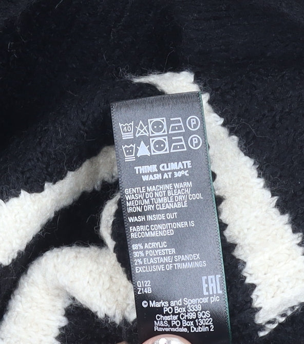 This stylish Marks and Spencer women’s jumper is a must-have for any wardrobe, combining timeless design with everyday comfort. Crafted in a classic black with cream horizontal stripes, this pullover jumper brings effortless sophistication to casual dressing. Featuring a collared neckline with a deep V finish, it offers a slightly more structured alternative to a basic crew neck, making it versatile enough to wear for work, casual days out, or smart-casual occasions. Designed in a soft chunky knit, this jumper is made from a carefully blended combination of acrylic, polyester, and elastane, ensuring a balance of warmth, durability and comfortable stretch. The material breakdown is 68% acrylic, 30% polyester, and 2% elastane, providing a cosy feel that is lightweight enough for layering across the seasons. With its regular fit and long sleeves, it provides a flattering, easy-to-wear silhouette that works well with jeans, skirts, or tailored trousers. The black and cream striped design is chic and timeless, giving it an easy-to-pair look that doesn't go out of style. Perfect for autumn and winter wear, this jumper is machine washable, making it a practical piece to keep on regular rotation in your wardrobe. Although pre-owned, it remains in very good condition with only light signs of wear and no visible damage. This ensures that you are getting a quality item at a great value price. Ideal for casual, everyday styling or layering over shirts, this Marks and Spencer knit is a versatile piece that blends comfort with classic design. Don’t miss the chance to add this go-to staple to your collection — perfect for keeping warm while still looking chic throughout the colder seasons.