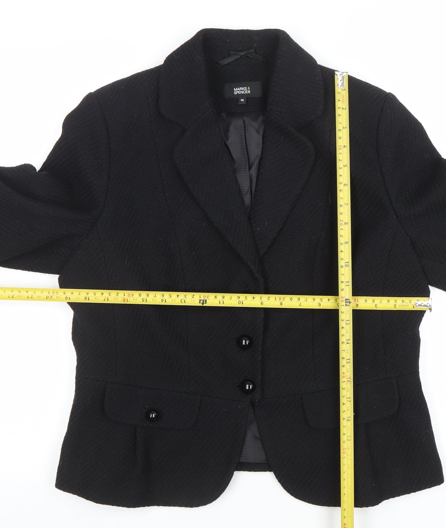 Marks and Spencer Womens Black Size 16 Single-Breasted Blazer