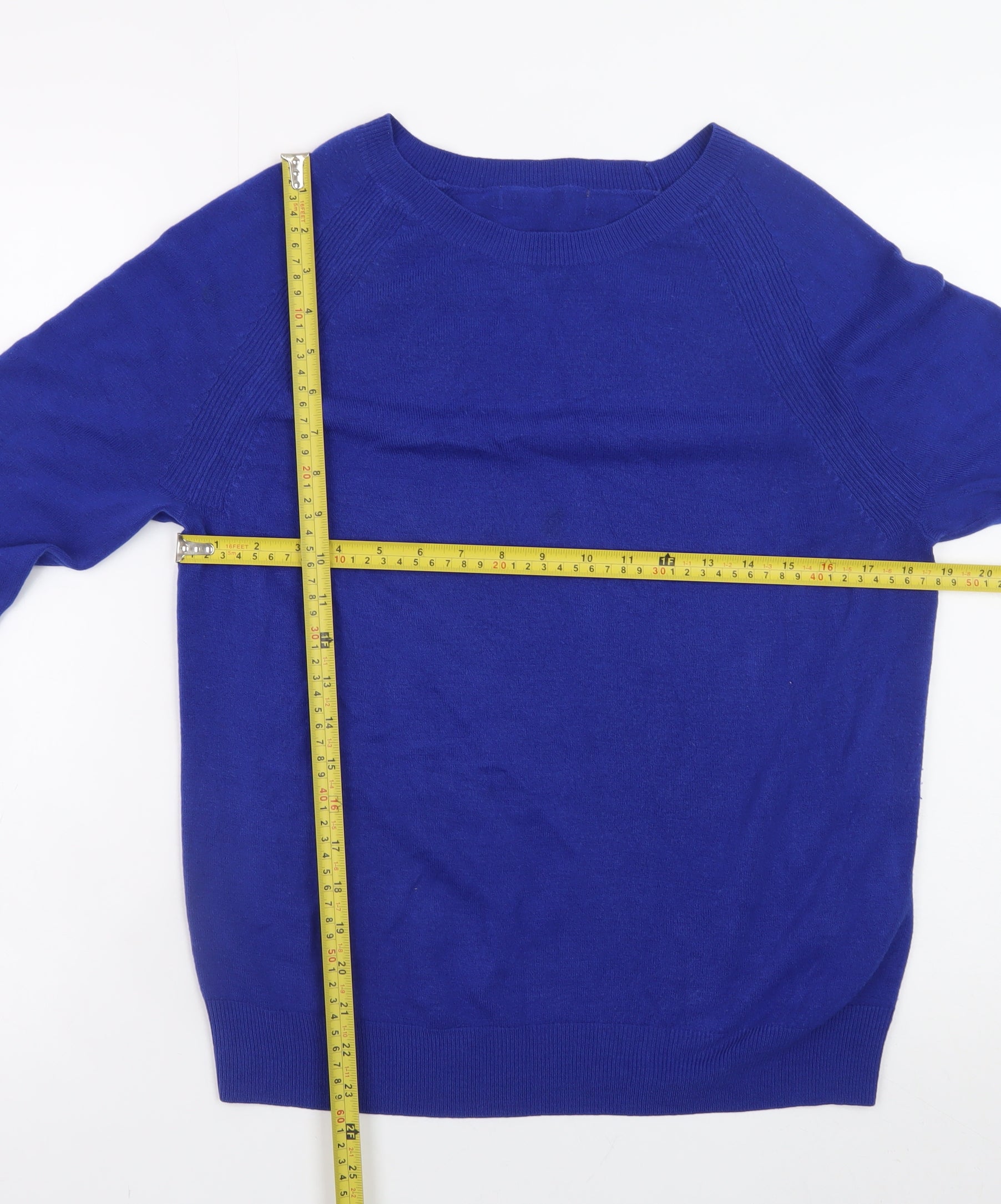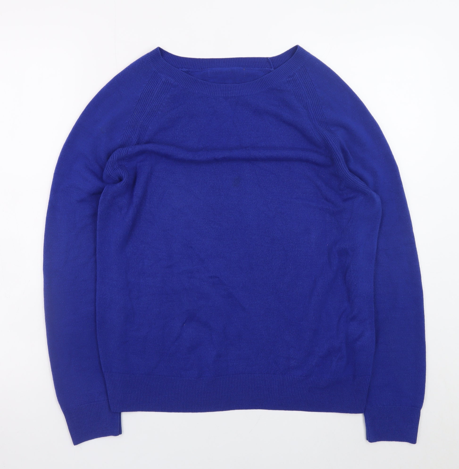 This Marks and Spencer women’s pullover jumper in a vibrant cobalt blue is a classic wardrobe essential that blends comfort and timeless style. Crafted from soft 100% acrylic, it offers a lightweight feel and easy-care maintenance, making it perfect for day-to-day wear. The high-quality knit fabric provides durability and a smooth texture with a moderately tight-knit construction that holds its shape beautifully. Designed in a flattering regular fit with long raglan sleeves, it ensures both comfort and freedom of movement, making it ideal for layering or wearing on its own. The simple crew neckline and ribbed cuffs and hem give it a clean, modern look suitable for casual occasions, workwear layering, or smart-casual styling during cooler months. Marked as a UK size 14, it offers a balanced silhouette that suits a variety of body shapes. This jumper’s rich blue hue adds a pop of colour to any outfit, pairing easily with jeans, skirts, or tailored trousers for a versatile appearance. The fabric is machine washable at 30°C, offering easy care and practicality with energy-saving benefits. This item is in excellent condition with very minimal signs of wear, showing careful use and well-preserved texture. Perfect for autumn through spring, it provides a cosy yet breathable layer without being bulky. Whether dressing up for a relaxed outing or creating a polished everyday look, this Marks and Spencer jumper delivers on comfort, style, and quality. Enhance your collection with a reliable knitwear piece that embodies effortless elegance and British everyday versatility.