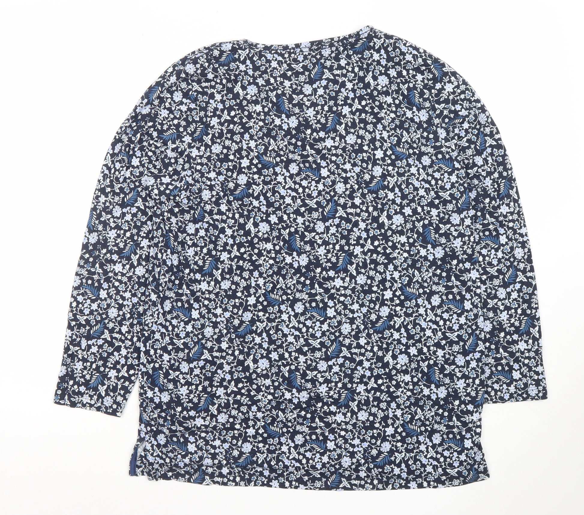 Women’s Blue Floral Jersey 3/4 Sleeve Top Size 14