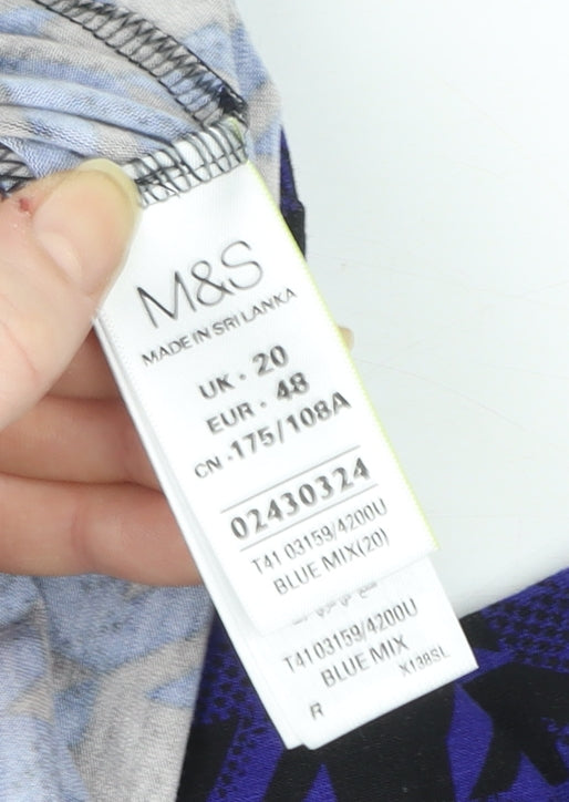 Julipa Women Blue Floral Tunic Blouse Size 20 3/4 Sleeve V-Neck Cotton