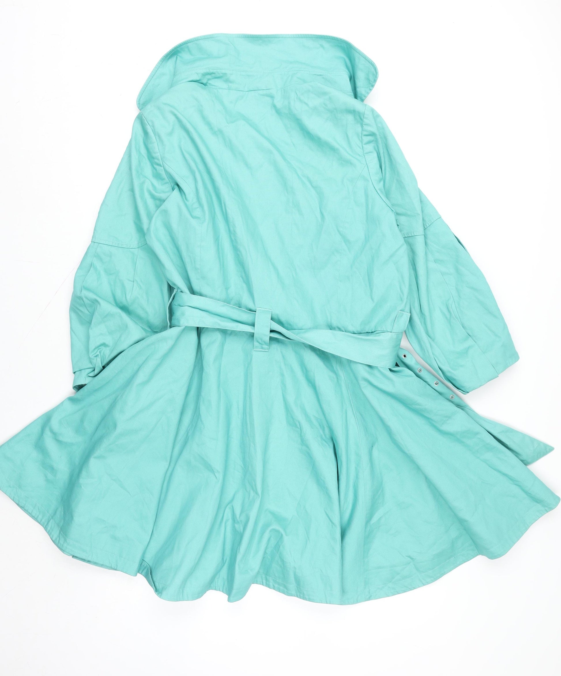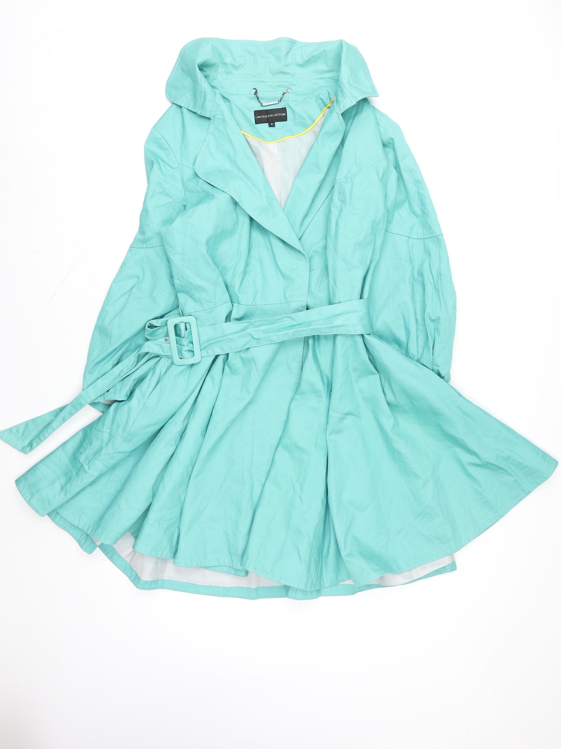 Elevate your outerwear collection with this beautifully tailored Marks and Spencer Limited Collection trench coat in a refreshing light turquoise green hue. Designed with sophistication in mind, this long-line coat features a flattering belted waist that accentuates your silhouette while ensuring comfort and style. The soft cotton twill fabric gives a smooth yet structured feel, making it ideal for the transitional seasons of spring and autumn. With a classic collared neckline and full-length sleeves, it brings timeless elegance to any outfit – perfect for layering over workwear, smart-casual ensembles or evening looks. The matching belt buckle detail adds a touch of refinement and versatility, allowing you to wear it open for a relaxed look or cinched for a defined shape. The coat falls gracefully for a polished silhouette that flatters most figures, especially in this size 18 cut. Fully lined for added comfort and ease of wear, this piece captures the quality and craftsmanship expected from Marks and Spencer. A chic essential for those cooler days, this coat blends functionality with fresh seasonal colour, offering practicality and poise in one. Whether you’re heading to the office, out shopping, or dressing up for dinner, it’s a stylish choice that transitions effortlessly between casual and business settings. The condition is excellent, showing minimal signs of wear with only light creasing to the outer fabric from storage. This versatile trench coat is a must-have wardrobe staple for anyone seeking a mix of elegance, comfort, and timeless appeal. Make an impression with this beautifully designed coat – a statement in both form and function that’s sure to become a go-to favourite year after year.
