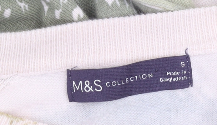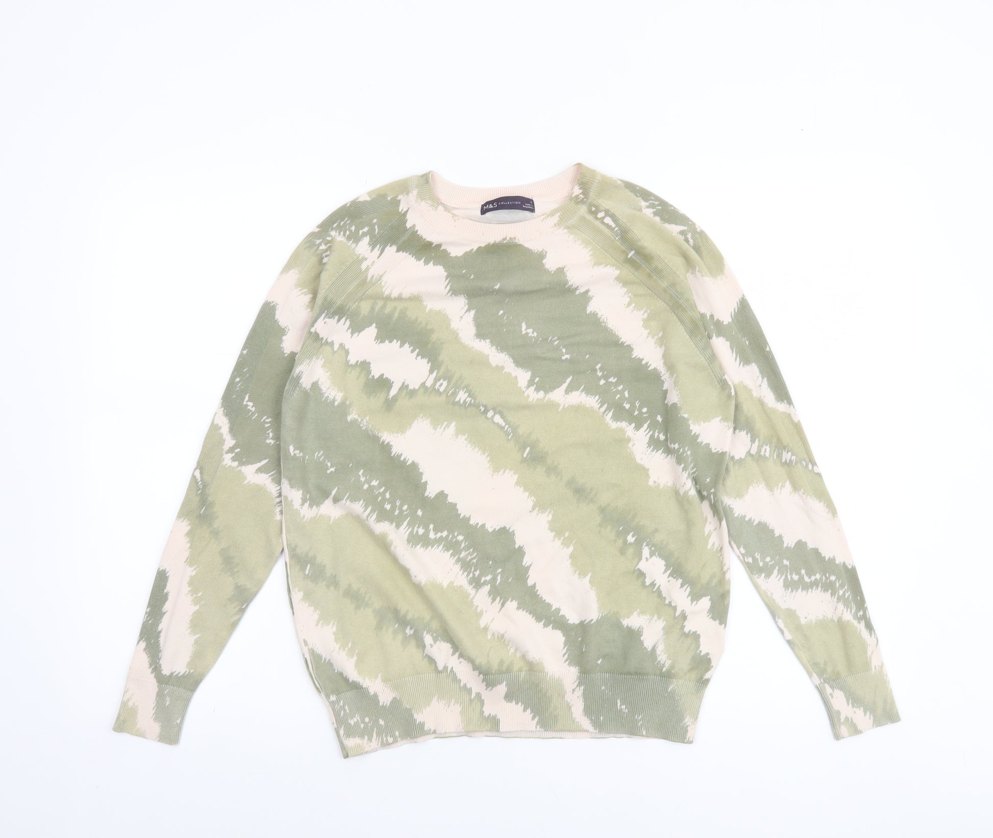 Stay effortlessly stylish with this Marks and Spencer Women’s Khaki Mix Pullover Jumper, a perfect blend of comfort and fashionable design. Crafted from a soft, breathable cotton blend with 77% cotton and 23% polyamide, this lightweight piece offers both durability and a pleasant feel against the skin. The jumper features a modern camouflage-inspired pattern in soothing shades of green and beige, ideal for adding subtle texture and character to your casual wardrobe. Designed with a classic crew neckline and long raglan sleeves, it allows ease of movement and a comfortable fit that flatters a wide range of body shapes. The tight-knit fabric ensures the jumper retains its shape and finish over time, making it a reliable piece for regular wear throughout multiple seasons. Perfect for layering during the cooler months of autumn and winter, this versatile Marks and Spencer jumper also transitions seamlessly into springtime outfits. Pair it with jeans or chinos for a laid-back weekend look, or layer under a jacket for stylish warmth when heading outdoors. The knit construction provides excellent comfort while maintaining a polished appearance, whether you’re dressing for leisure or casual outings. In excellent pre-owned condition with no visible flaws, this piece embodies the superior quality and elegant simplicity Marks and Spencer is known for. Designed to be easy to care for, it’s fully machine washable for your convenience. Comfortable, practical, and stylishly understated, this jumper is ideal for anyone seeking to add a touch of refined casual style to their collection. Whether worn at home, for errands, or relaxed get-togethers, it ensures you’ll look and feel your best with minimal effort.