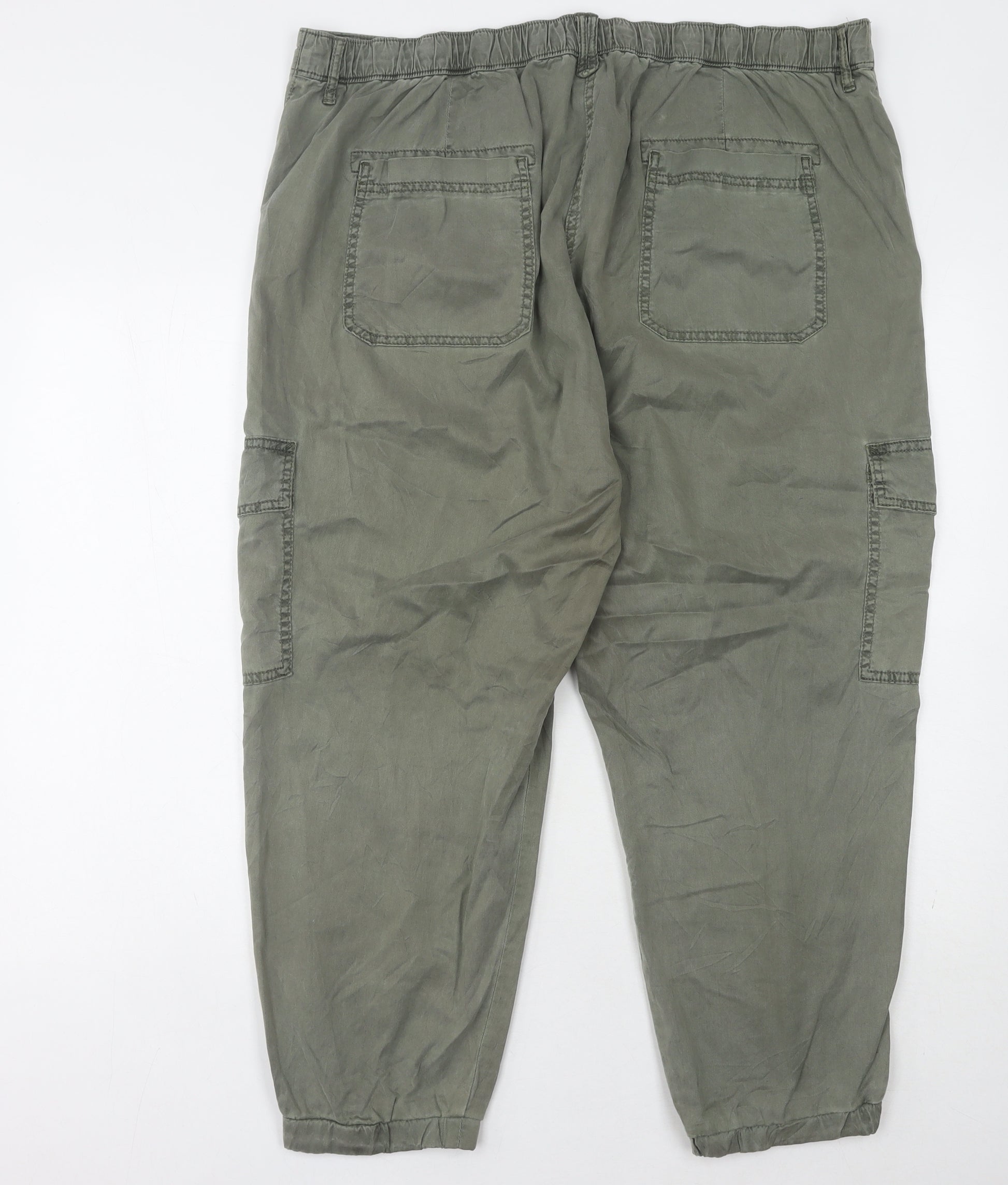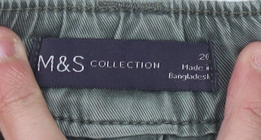 Explore comfort with style in these Marks and Spencer women’s green cargo trousers. Crafted primarily from soft, durable cotton, these trousers offer a relaxed fit, perfect for casual affairs. The mid-rise waist and elastic waistband ensure a comfortable fit, complemented by practical pockets to keep essentials handy. The timeless cargo style is enhanced with both button and zip closures, ideal for everyday wear. Designed for versatility, these trousers suit a variety of casual occasions. Pair them with your favourite top for a stylish, laid-back look. With no visible damage or wear, these trousers present in excellent condition, ready for your wardrobe. Perfect for a stroll in the park or a casual outing, you'll find them a perfect blend of comfort and fashion. Experience the quality that Marks and Spencer is renowned for, all at an attractive price.