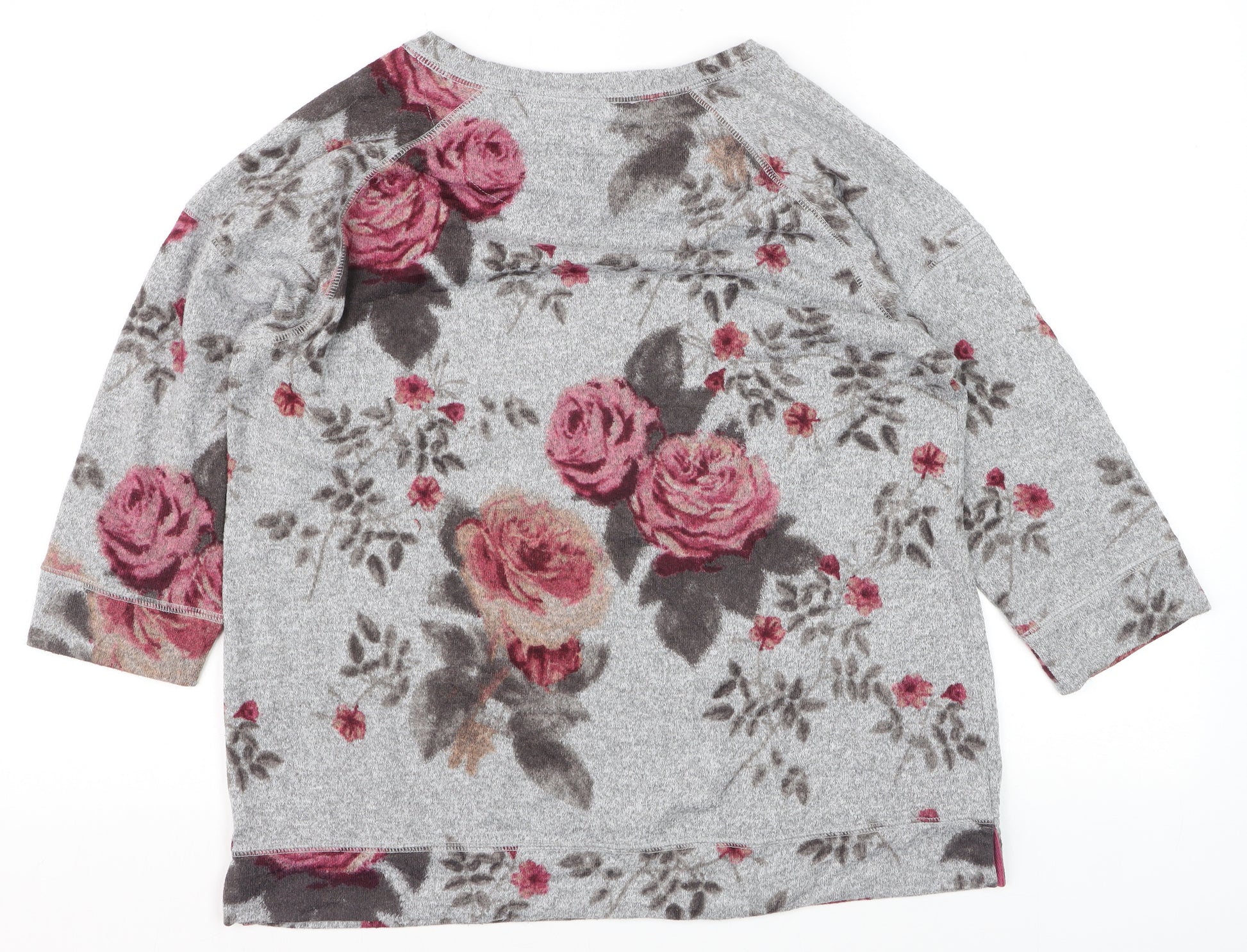 Add a touch of timeless floral charm to your wardrobe with this lovely Women’s Floral Pullover Jumper from Marks and Spencer. Crafted from a soft and comfortable blend of polyester and elastane, this piece provides a flattering and easy-to-wear fit that combines casual comfort with everyday sophistication. The grey base is beautifully contrasted by rose and pink floral patterns, giving the jumper a feminine and graceful appeal perfect for cooler seasons.Designed in a relaxed silhouette with a regular fit, this jumper features a classic crew neckline and 3/4 raglan sleeves that lend an effortless touch of style. Its lightweight knitted fabric feels smooth against the skin while ensuring breathability and durability, ideal for layering or wearing on its own. The flattering floral motif makes it a versatile choice for casual outings, workdays, or cosy weekends at home.This Marks and Spencer jumper is both stylish and practical, suitable for autumn, spring, and winter wear. Whether paired with jeans for a laid-back look or dressed up with tailored trousers, it offers easy elegance and enduring comfort. The floral design gives it a refreshing hint of femininity, perfect for those who love classic prints with a modern twist.In excellent pre-owned condition, this jumper shows only minimal signs of wear with no visible flaws, making it a wonderful addition to any wardrobe. Easy to care for and machine washable, it’s designed to remain soft and vibrant wear after wear. Practical yet pretty, this piece embodies the effortless everyday style that Marks and Spencer is known for. A great choice for those seeking comfort, quality, and understated elegance in their knitwear collection.