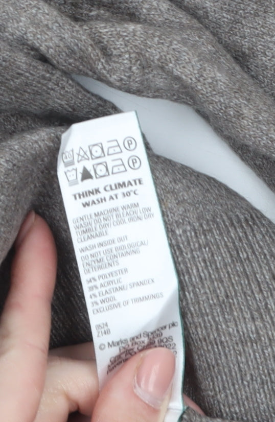 Add timeless comfort to your wardrobe with this versatile grey knit pullover jumper from Marks and Spencer. Crafted with a blend of polyester, acrylic, wool, and elastane, it offers both softness and gentle stretch for a flattering and comfortable fit. Designed in a classic crew neck style, this long sleeve jumper provides a streamlined silhouette that layers effortlessly over shirts or works perfectly on its own. The fine, tight-knit texture ensures warmth without bulk, making it ideal for cooler autumn and winter days. With its understated design and neutral grey tone, this jumper pairs beautifully with jeans, tailored trousers, or skirts for both casual and workwear looks. Durable and easy to care for, it’s machine washable at 30°C, maintaining its shape and feel through repeated wear. The ribbed cuffs and hem offer a refined finish while helping the jumper retain its snug fit. Perfect for everyday wear, this Marks and Spencer women’s jumper strikes the ideal balance between style and practicality. Whether you’re dressing for a relaxed day out or a smart-casual office setting, this piece will elevate your outfit effortlessly. Comfortable, versatile, and made to last, it’s a must-have essential for any modern wardrobe. Treat yourself or a loved one to this simple yet luxurious addition that blends traditional quality with contemporary ease of care, ensuring it remains a dependable favourite season after season.
