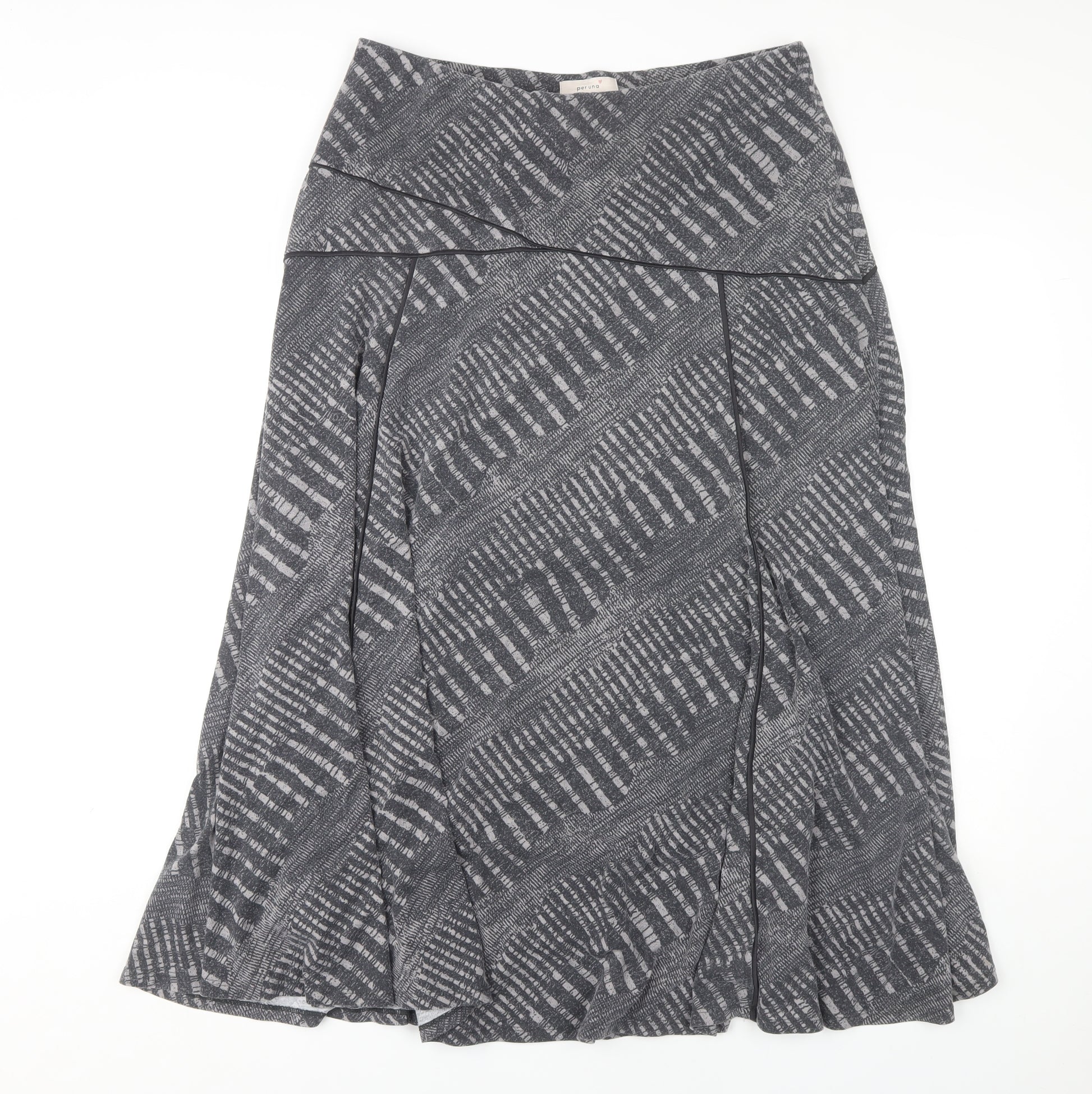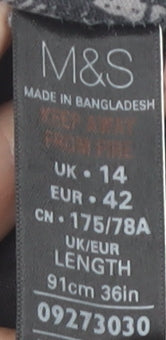 Upgrade your wardrobe with this elegant Marks and Spencer women’s midi skirt, designed to blend comfort and style. Crafted in a versatile grey tone, this skirt features a geometric pattern that adds a subtle yet striking detail. Made with a high-quality blend of 82% polyester, 13% viscose, and 5% elastane, it offers a comfortable stretch that enhances your silhouette. Perfect for all-day wear, its regular size 14 fit ensures it flatters effortlessly, making it a choice piece for various occasions. Whether you're heading to work, a casual outing, or just enjoying a day out, this skirt’s timeless design is versatile enough to match any top. Machine washable for easy care, keep your wardrobe fuss-free while maintaining style. In excellent condition, this piece shows no signs of wear or damage, guaranteeing you make a smart buy. Priced affordably, it’s a must-have item that deserves a spot in your collection.