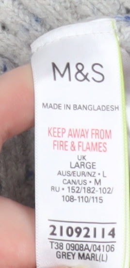 Stay comfortable and effortlessly stylish with this Marks and Spencer women’s grey ribbed cardigan. Expertly crafted from a soft knit blend of 69% acrylic, 29% polyester, and 2% elastane, this cardigan offers a cosy yet lightweight feel perfect for layering during the cooler months. Designed in a timeless grey marl shade, its rib-knit texture and large tortoiseshell-style buttons deliver both warmth and classic charm. The long raglan sleeves provide a relaxed silhouette, while the regular fit ensures it drapes beautifully over any outfit.With a durable yet comfortable composition, this cardigan is easy to care for — simply machine wash at 30°C for long-lasting freshness. The crew neckline makes it ideal for pairing with casual tops, blouses, or dresses. Its button-down front allows flexible wear, so you can style it open for a laid-back look or closed for added cosiness. Perfect for a range of occasions — from casual outings to workwear layering or even weekend relaxation — this versatile piece is a must-have for any wardrobe.Stylish yet practical, this Marks and Spencer cardigan transitions effortlessly between autumn and winter, making it an excellent choice for everyday wear. The blend of soft materials offers comfort without compromising on structure, while the ribbed texture adds subtle detailing for an elevated finish. Whether paired with jeans, trousers, or skirts, this cardigan complements any style whilst providing reliable warmth. In excellent pre-owned condition with no visible damage, this piece retains all the quality you expect from Marks and Spencer’s knitwear collection. A timeless essential for cooler days, ready to enhance your wardrobe with comfort, versatility, and understated elegance.