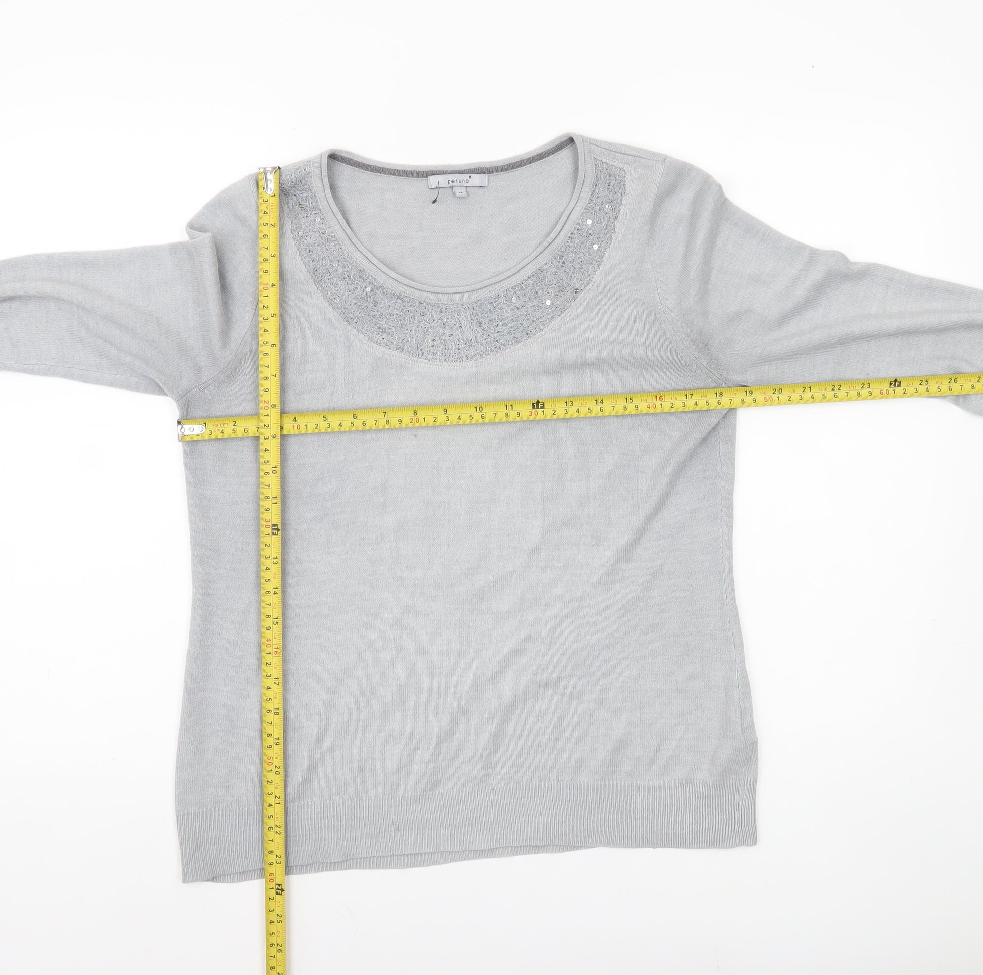 Women’s Grey Sequin Scoop Neck Jumper Size 14