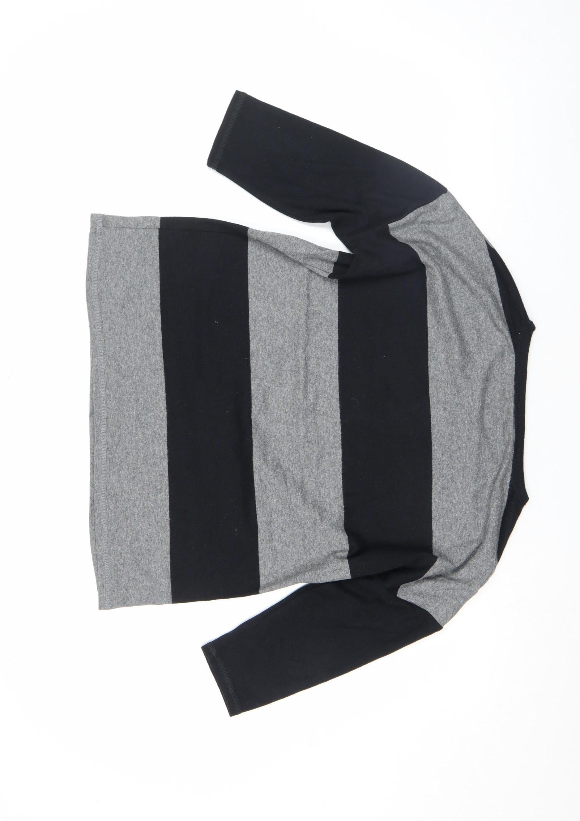 Women’s Grey Striped 3/4 Sleeve Jersey T-Shirt Size 12