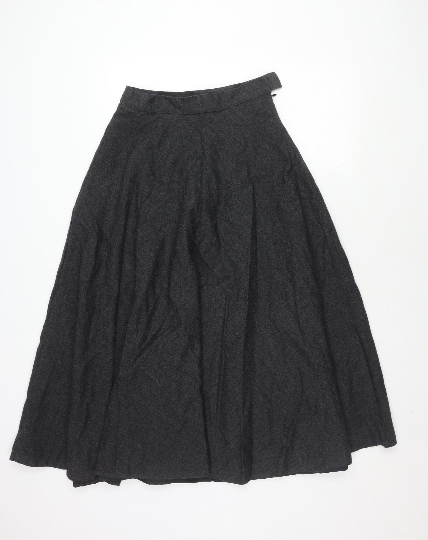 Step into timeless style with this elegant grey wool midi skirt from Marks and Spencer, tailored perfectly for a UK size 12. Complementing the sophisticated look, the skirt brings a classic flair with its midi length, ideal for both casual and more polished occasions. Crafted from pure wool, it ensures warmth and comfort, making it a valuable addition to any wardrobe. The understated design allows for versatile pairing with various tops, whether you're dressing up for work or keeping it chic for a leisurely outing. This skirt's unfussy zip closure adds a modern touch to its traditional design, ensuring ease of wear. The grey shade provides a neutral base, inviting endless styling possibilities with both bold and minimalist accessories. Suitable for any season, its quality and style are unwavering. Secure this pristine, tagged piece at an attractive price and redefine classic charm today.