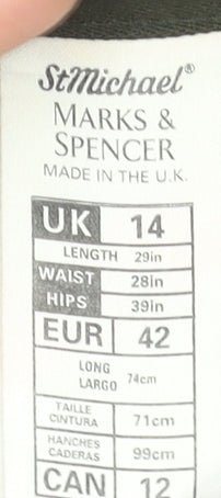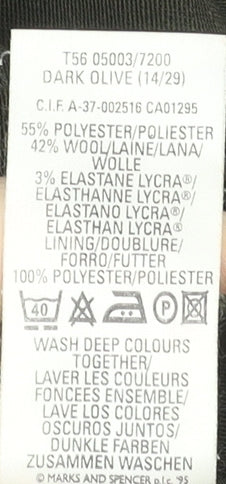 Step into timeless sophistication with this Marks and Spencer Women’s Olive Wool Blend Pencil Skirt, crafted to deliver both polish and comfort. Made in the U.K. under the St Michael label, this classic piece combines elegance with practical wearability. The dark olive green shade adds a depth of colour that complements autumn and winter wardrobes perfectly, pairing easily with blouses, knits, and tailored jackets for business or smart daytime ensembles. Designed in a flattering straight silhouette, the skirt has a high-rise fit and a pencil-style cut that creates a sleek profile ideal for professional and formal settings. Constructed from a premium fabric blend of 55% polyester, 42% wool, and 3% elastane, it offers warmth, resilience, and a touch of stretch for a flexible, comfortable fit through long days at the office or special occasions. The knee-length hem with a modest back slit allows for easy movement while preserving a refined look. Fully lined with soft polyester, this skirt ensures a smooth feel against the skin, maintaining shape and structure throughout wear. The clean, no-pattern finish gives it a minimalist charm, providing endless styling possibilities from neutral coordinate outfits to bolder statement tops. Closing neatly with a back zip, the skirt exemplifies dependable quality and enduring style. As a vintage Marks and Spencer piece, it reflects the brand’s tradition of exceptional craftsmanship. It remains in excellent pre-owned condition with only light signs of gentle wear and a clean, presentable fabric surface. Perfect for business, workwear, or formal settings, this pencil skirt will become a timeless wardrobe staple. Whether dressing for the boardroom or a polished evening occasion, this olive skirt delivers effortless refinement, making it a must-have for lovers of classic British fashion.