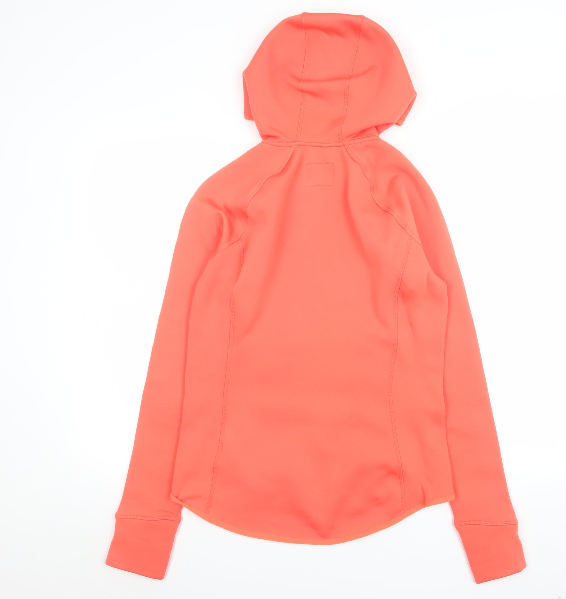 Stay ready for your workout in style and comfort with this Marks and Spencer Women’s Orange Hooded Full Zip Softshell Jacket in size 10. Crafted from a premium blend of 91% polyester and 9% elastane, this activewear essential combines flexibility and durability, allowing you to move freely whether you are jogging, cycling, or simply taking a walk outdoors. The smooth softshell outer and gentle inner lining deliver warmth without adding bulk, making it ideal for layering during those breezy spring and autumn mornings or cooler winter days. Its sporty design is highlighted by practical features every active woman loves: a full front zip for easy wear, two zipped side pockets for securing small essentials, and integrated thumb holes at the cuffs that give your hands an extra touch of warmth during brisk weather. The attached hood provides additional coverage when you’re caught in light wind or drizzle, making it a perfect companion for outdoor adventures and casual activewear looks alike. The breathable and stretch-enhanced fabric promotes comfort and ease of movement, while its modern silhouette ensures a flattering slim fit. Designed with versatility in mind, this orange jacket transitions seamlessly from sporting activities to a laid-back casual outfit, pairing effortlessly with leggings or jeans. Its softshell construction provides a smooth, sleek finish, embodying Marks and Spencer’s reputation for quality and practicality. Machine washable and easy to maintain, it’s built for everyday use without sacrificing style. With its clean and contemporary look, this jacket blends vibrant colour with practical design, ensuring you stay fashionable and functional all at once. In excellent pre-owned condition with minimal signs of wear, this Marks and Spencer piece offers great value and timeless appeal for those who appreciate both performance and effortless British style.