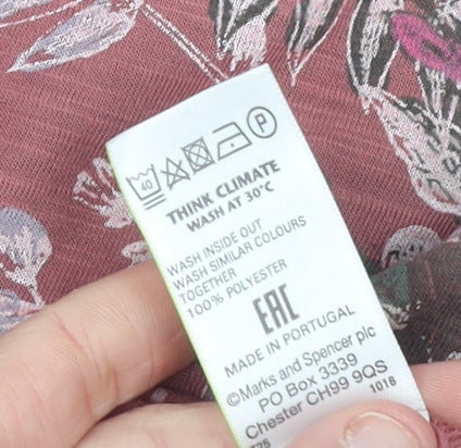 This elegant Marks and Spencer women’s long sleeve tunic top in size 12 offers a flattering and comfortable fit for everyday wear. Crafted from 100% polyester, the fabric is lightweight, soft, and easy to care for, making it ideal for transitional seasons such as spring and autumn. The design features a charming floral print in complementary shades across the front panel, adding a touch of natural beauty and artistic flair. The tunic-style cut gives a relaxed, draping silhouette that provides both ease of movement and a stylish, feminine look suitable for casual daily wear or informal gatherings. The crew neckline and classic long fitted sleeves ensure versatility and comfort. Its pullover closure makes it effortless to wear, while the slight side splits enhance comfort when moving or layering. The floral and nature-inspired design infuses a touch of elegance to your wardrobe and can be paired perfectly with jeans, trousers, or leggings for a chic casual outfit. Thoughtfully made by Marks and Spencer, known for quality and comfort, this top is produced in Portugal with environmentally mindful washing guidance. Although pre-loved, it remains in excellent condition with only light signs of wear and no evident flaws. This Marks and Spencer floral tunic top combines timeless style, practicality, and quality in a single piece — the perfect affordable addition to elevate your everyday wardrobe with effortless grace and sophistication.