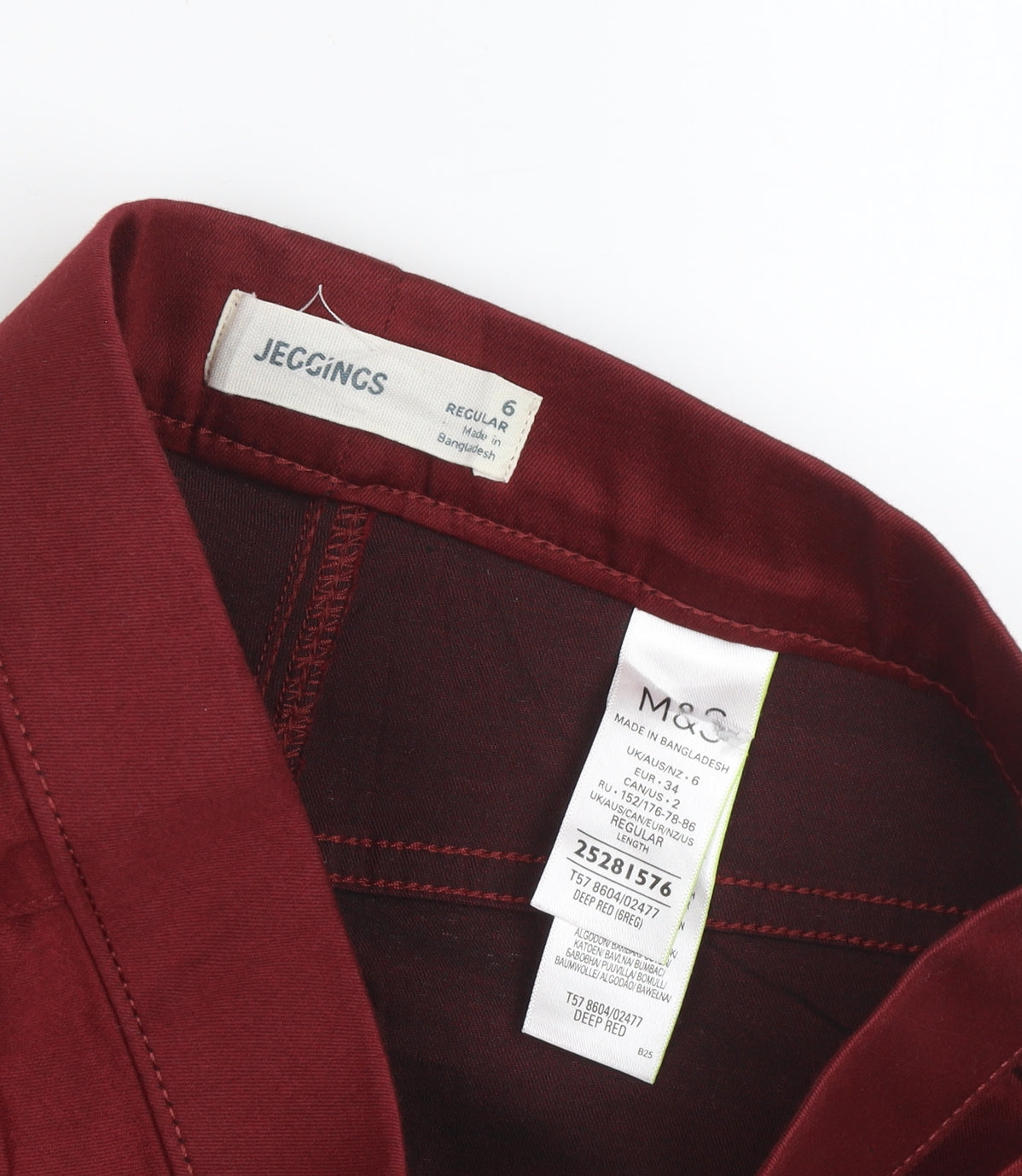 Discover ultimate comfort and style with these Marks and Spencer women's jeggings. Designed in a striking deep red colour, these jeggings offer the perfect balance of style and everyday practicality. Crafted from a quality blend of cotton, polyester, and elastane, the fabric ensures a snug but comfortable fit that adapts to your body shape. These jeggings are sized at a UK 6 with a regular fit, making them an ideal choice for a sleek silhouette. The simplicity of their design with no distinct pattern makes them versatile for multiple occasions, whether you're dressing up for a night out or keeping it casual. The softness of cotton combined with the flexibility of elastane makes these jeggings not only stylish but also comfortable enough for all-day wear. Marks and Spencer, known for quality in fashion, delivers these jeggings with machine washability, ensuring easy maintenance. Choose these jeggings to bring a burst of colour into your wardrobe while enjoying the trusted comfort and fit of a well-known brand. Don't miss out on an opportunity to own this wardrobe staple, perfect for any season.