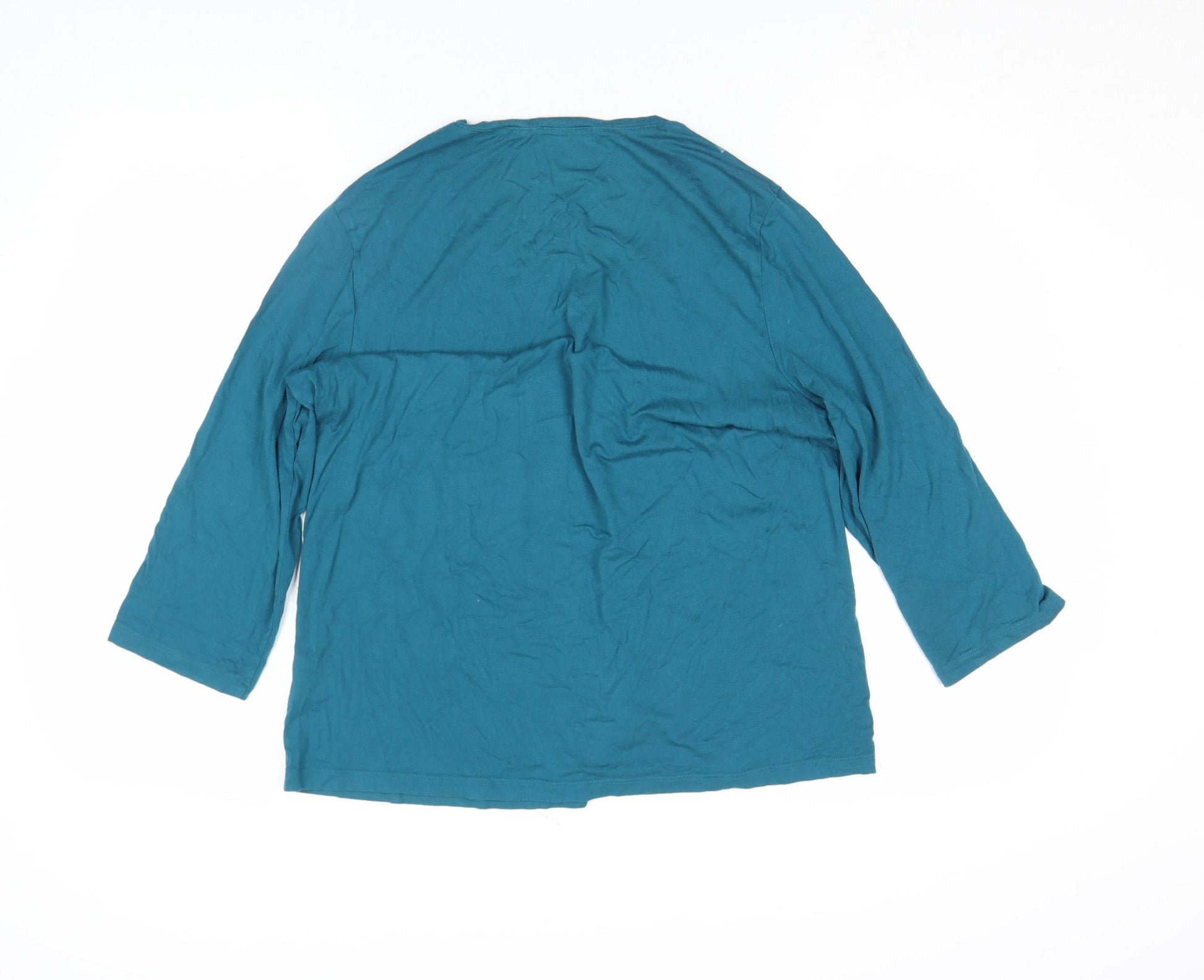 Women’s Teal 3/4 Sleeve V-Neck Cotton Top UK 20