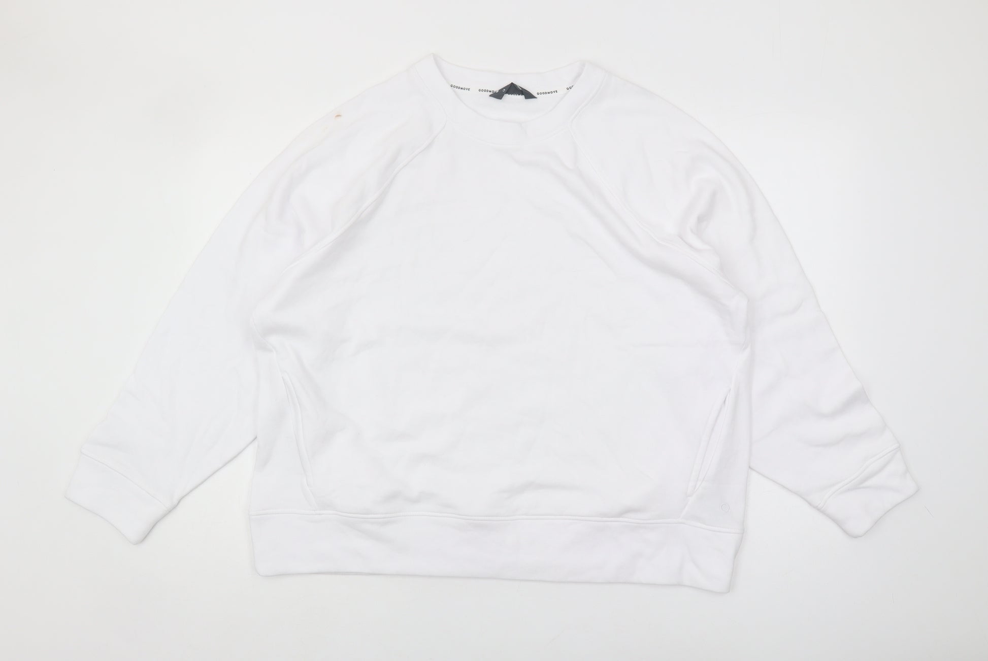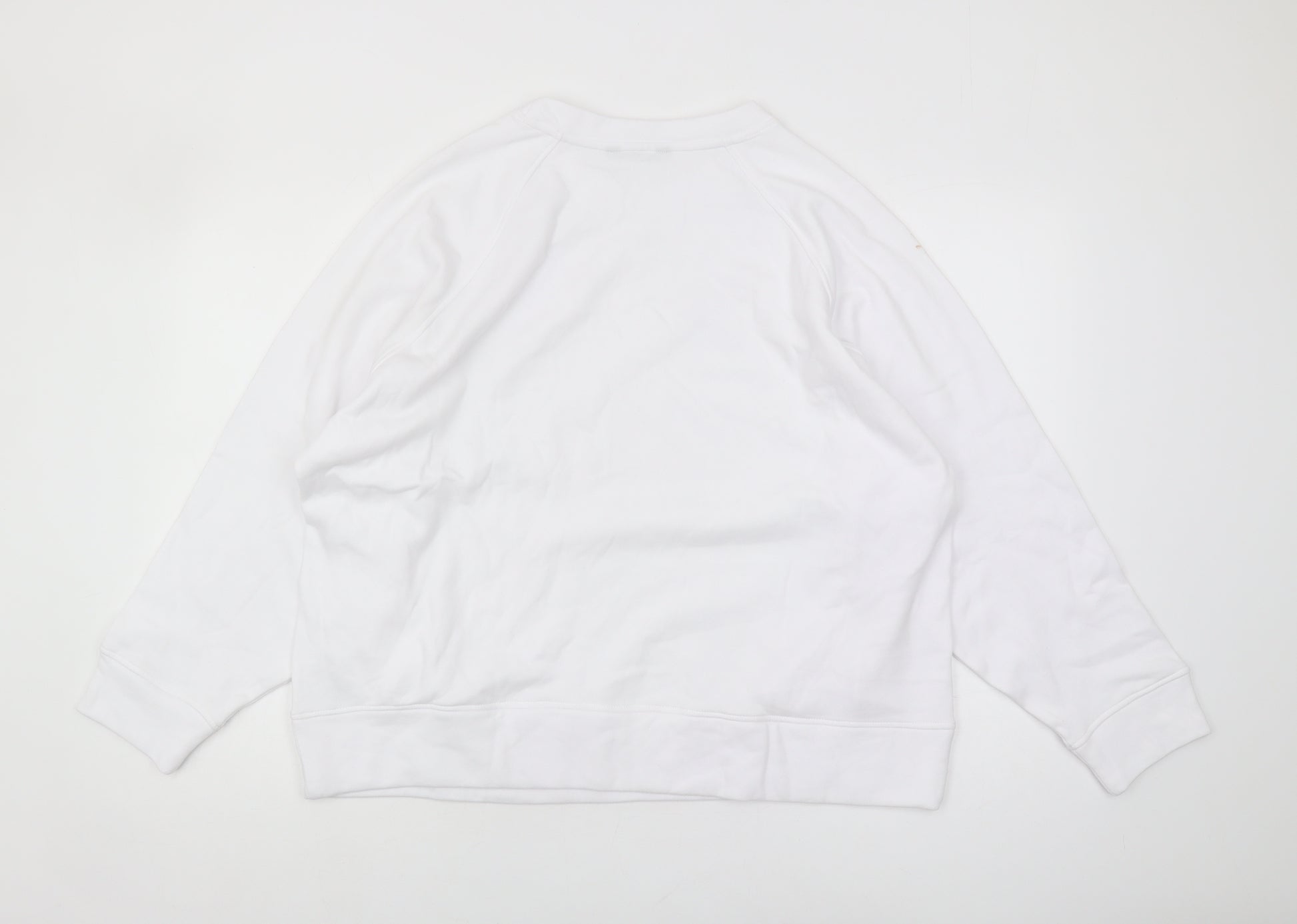 This Marks and Spencer women’s pullover sweatshirt in a crisp white colour is a timeless addition to your casual wardrobe. Designed for all seasons, this regular fit sweatshirt is both lightweight and breathable, making it perfect for layering or wearing alone. Crafted from a comfortable cotton and polyester blend, this sweatshirt offers durability and softness. The clean and simple design features a classic crew neck and long raglan sleeves, providing a versatile look that can be effortlessly styled with jeans or joggers for a casual, laid-back feel. Despite its classic appeal, this sweatshirt is more than just basic with its subtle graphic print, adding a hint of modernity to the design. It’s easy care fabric ensures convenience, being machine washable and easy to maintain. Although pre-owned, it remains in excellent condition, with only minor marks visible, which do not detract from its overall appearance or quality. Whether you're lounging at home, heading out for a brisk walk, or just need a reliable layer, this Marks and Spencer sweatshirt is sure to be a go-to piece in your collection. Available in size 18, this pullover sweatshirt will keep you feeling comfortable and stylish through every season.