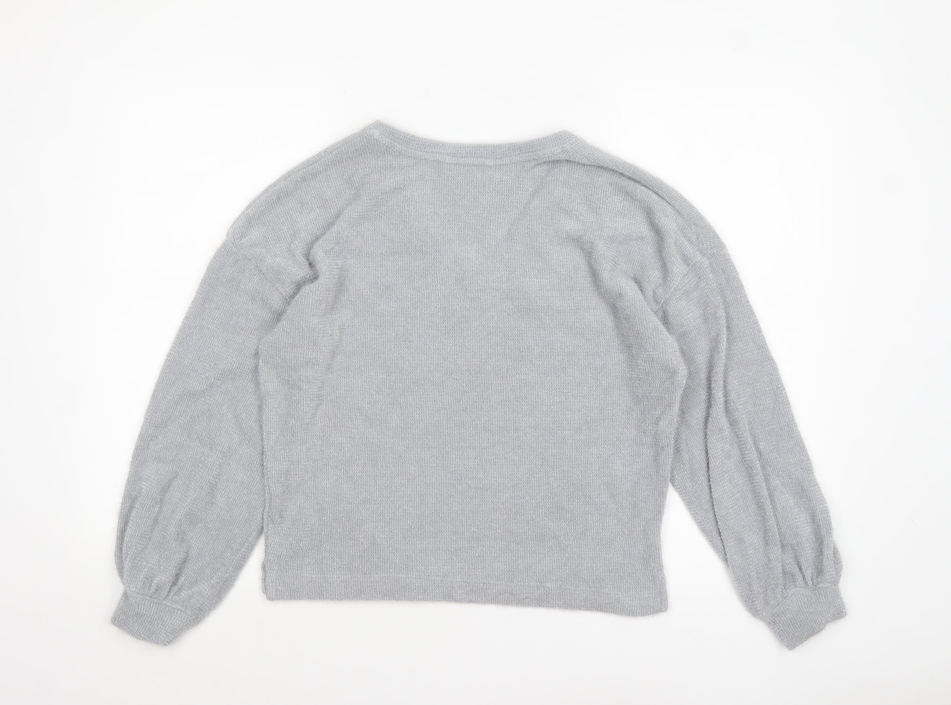 Women Silver Grey XS Knit V-Neck Pyjama Top
