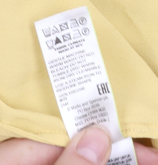 Add a splash of sunshine to your wardrobe with this elegant Marks and Spencer button-up shirt. Crafted from 100% viscose, this lightweight woven piece offers a relaxed and comfortable fit perfect for any casual occasion. The solid yellow tone brightens up your ensemble, making it ideal for both spring and summer seasons. Designed for women, this shirt features a classic collared neckline and long sleeves that offer a timeless appeal. The button closure ensures a secure fit while maintaining an effortless style. Despite its excellent condition, slight creasing is observed, lending a touch of character to this chic option. Easy to care for, this shirt is machine washable, ensuring you spend more time enjoying its comfort and style rather than worrying about maintenance. Perfect for casual outings or a day at the office, you can dress it up with a pair of tailored trousers or keep it laid-back with your favourite jeans. Versatile and simple, it fits seamlessly into any woman's wardrobe. Don’t miss out on this stylish shirt that brings a cheerful note to your everyday look.