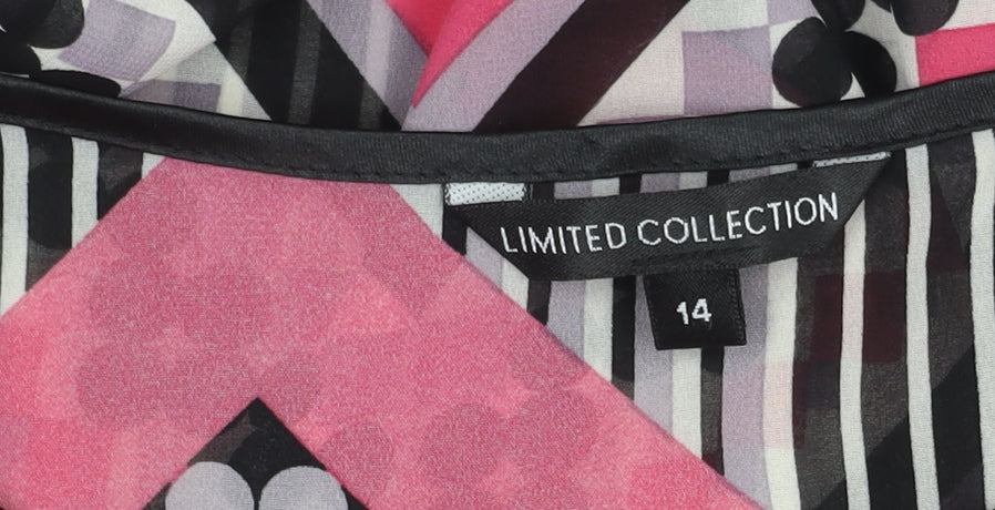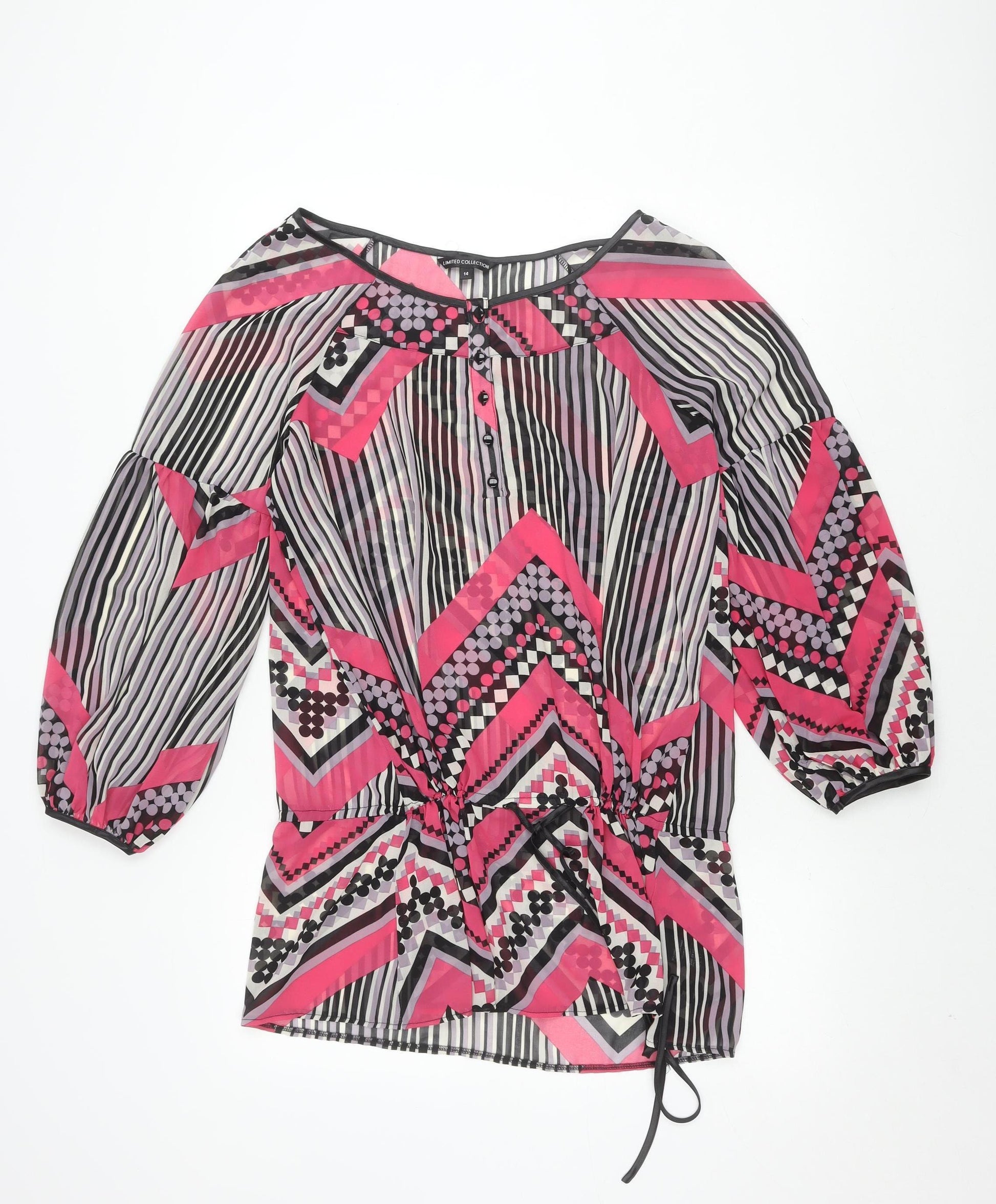Elevate your wardrobe with this vibrant Marks and Spencer women's top, perfect for adding a splash of colour to your attire. This top, in size 14, showcases a stunning multicoloured geometric pattern that is sure to draw attention. Ideal for women who love bold prints, this piece is crafted from high-quality polyester for lightweight and breathable comfort. The long sleeves make it a versatile choice for any season, whether layering during winter or wearing alone on a crisp spring day. The button closure adds a touch of elegance, offering a classic look and ease of wear. Designed with the modern woman in mind, its excellent condition reflects minimal signs of previous use, making it a must-have addition to your collection. Suitable for casual outings or a more polished look, this top from the Limited Collection line blends ease with style seamlessly. Machine washable for convenient upkeep, this garment promises durable wear across numerous occasions. With its relaxed fit, this blouse ensures a flattering silhouette that complements a variety of body shapes. Enliven your style with this Marks and Spencer essential that pairs effortlessly with both jeans and tailored trousers. Don't miss out on this chic piece that flawlessly fuses trend with tradition.
