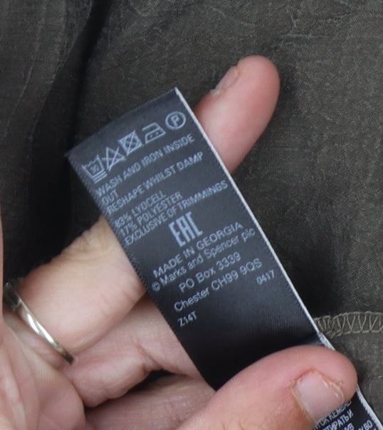 Step into timeless elegance with this A-Line Midi Skirt from Marks and Spencer, crafted for the modern woman who appreciates understated style. Designed in a rich brown tone, this skirt is a versatile addition to any wardrobe, seamlessly transitioning from day to evening wear. Its A-line silhouette offers a flattering fit, making it suitable for a variety of body types. The skirt is constructed from a blend of 78% Lyocell and 22% Polyester, giving it a soft yet durable feel. Ideal for all seasons, the fabric ensures comfort and wearability, whether you're navigating the bustling city streets or enjoying a relaxed weekend brunch.With dimensions designed to fit a UK size 10, this skirt sits comfortably at a mid-rise, accentuating the waist without constricting. Its midi length is both fashionable and functional, allowing for ease of movement and a look that's always in vogue. This piece is machine washable for convenience, making it easy to care for and ideal for the busy lifestyle.The skirt’s simplicity is its major allure, featuring no extraneous patterns or accents, letting you pair it effortlessly with a variety of tops and accessories. Whether you match it with a cosy knit in the winter or a light blouse in the summer, the skirt promises to be a reliable staple.While it arrives in excellent condition with minimal signs of wear and without tags, it speaks to quality and resilience, expected from the esteemed Marks and Spencer brand. A perfect blend of practicality and polished style, this A-Line Midi Skirt is set to become your go-to for both casual and smart-casual occasions.