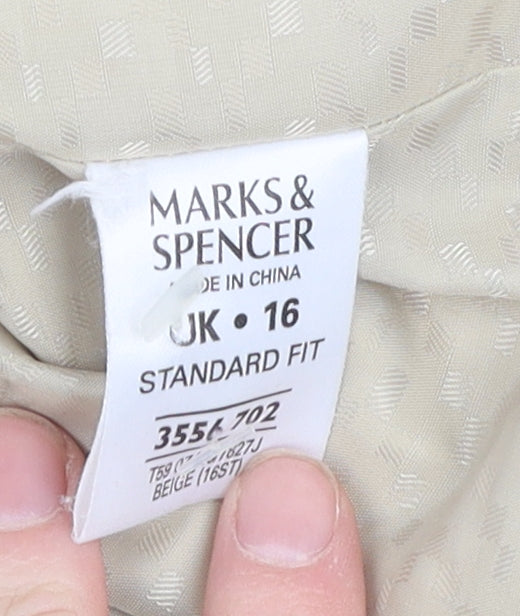 Explore sophisticated elegance with this women's beige blazer from Marks and Spencer, tailored in a regular fit. Designed for versatility, it effortlessly complements both business and casual wardrobes, making it an indispensable piece for any season, particularly Spring and Summer. Crafted from a luxurious blend of 55% Linen and 45% Viscose for breathability and comfort, this blazer offers a soft touch without compromising on style. The polyester lining ensures a smooth, comfortable fit for all-day wear.Featuring a classic button closure and long sleeves, this short-length blazer is perfect for layering over dresses or pairing with trousers for a polished look. The minimalist design, accentuated by elegant buttons, invites style without the need for additional patterns, embodying the essence of timeless fashion. With its new with tags condition, you can trust in its quality and longevity.Ideal for business occasions or elevating a casual outing, this versatile blazer promises to enhance any ensemble with its beige hue offering a neutral base adaptable to various outfits. Machine washable, it ensures easy care and practicality.Elevate your wardrobe with this women's blazer by Marks and Spencer and enjoy a seamless blend of function and flair that's sure to make an impression.
