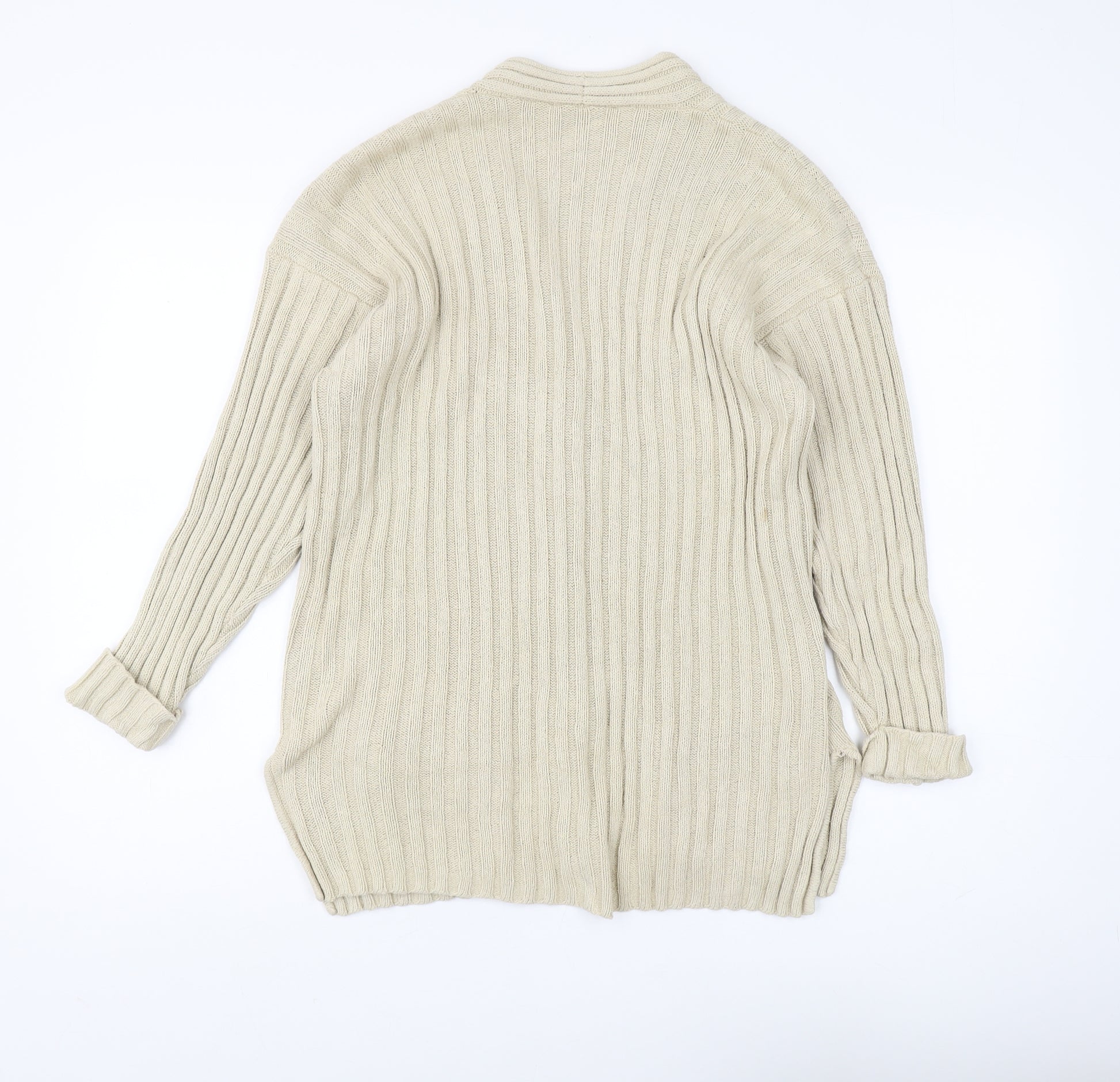 Elevate your wardrobe with this elegant Marks and Spencer cardigan, crafted from luxurious 100% silk. This beige, chunky-knit piece features a V-neckline and long sleeves, making it a perfect choice for Autumn days. Designed with practicality and style in mind, it includes button accents and pockets, adding charm and functionality to the garment. With its regular fit, this cardigan offers comfort without compromising on style, ensuring a sophisticated addition to any outfit. Suitable for casual occasions, this vintage-inspired piece will keep you looking chic and feeling comfortable. This cardigan is an ideal option for those who appreciate quality craftsmanship and timeless design. Don't miss this opportunity to add a versatile and elegant cardigan to your collection.