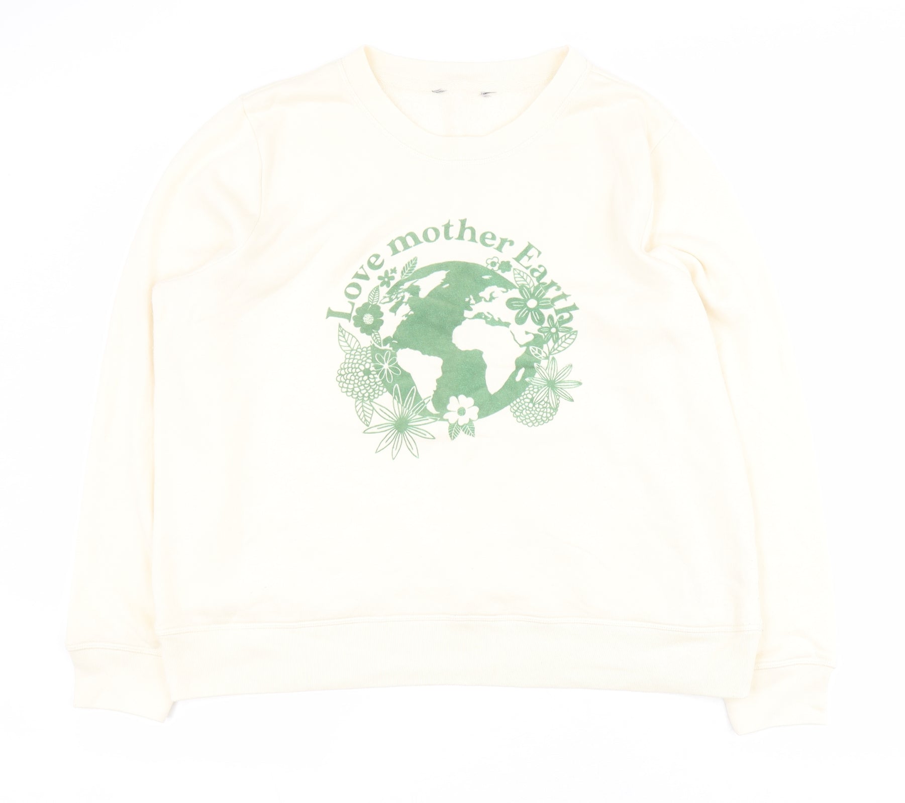 Womens Beige Cotton Pullover Hoodie Size 16 Pullover - Slogan
