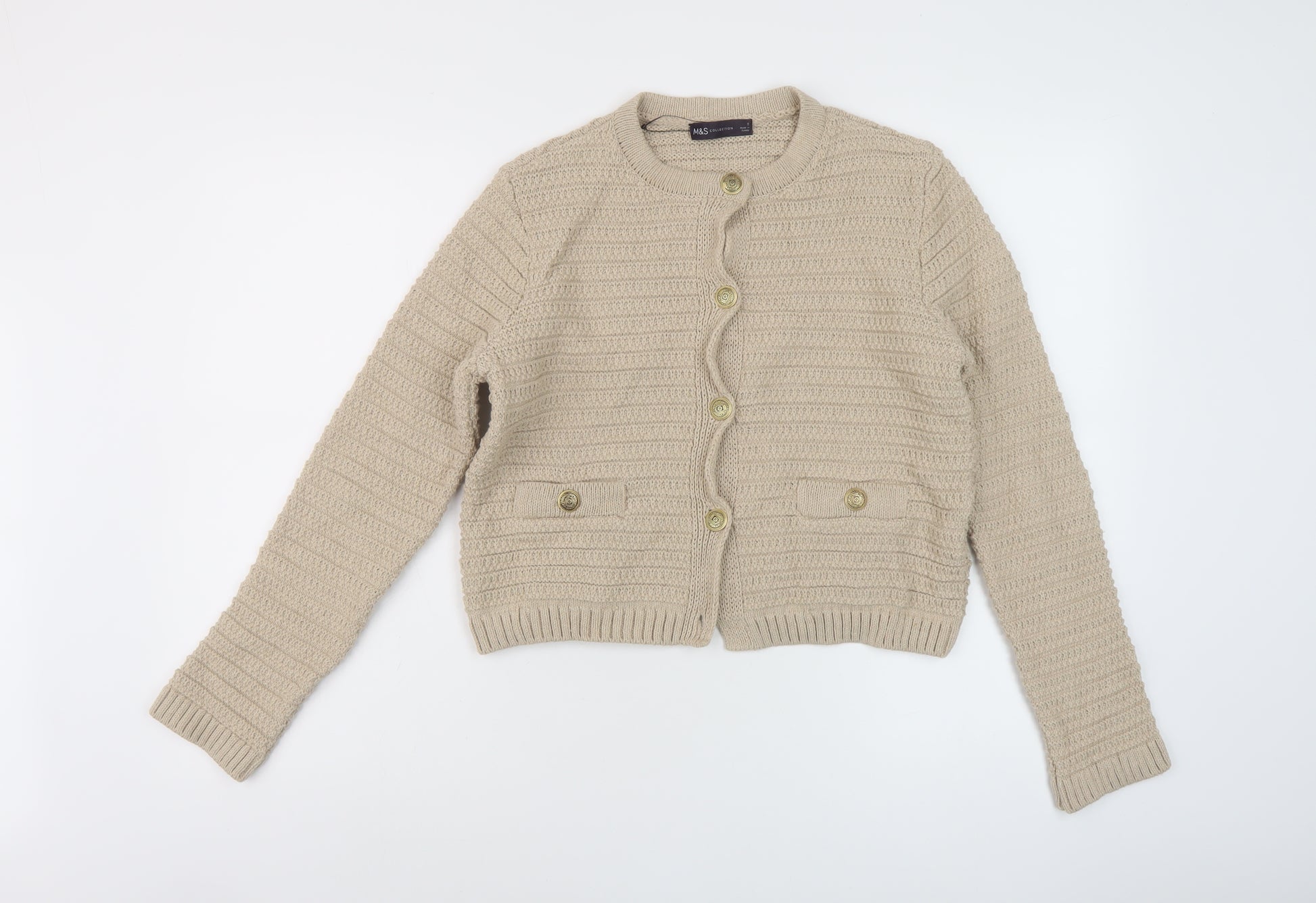 Womens Beige Crew Neck Polyester Cardigan Jumper Size S