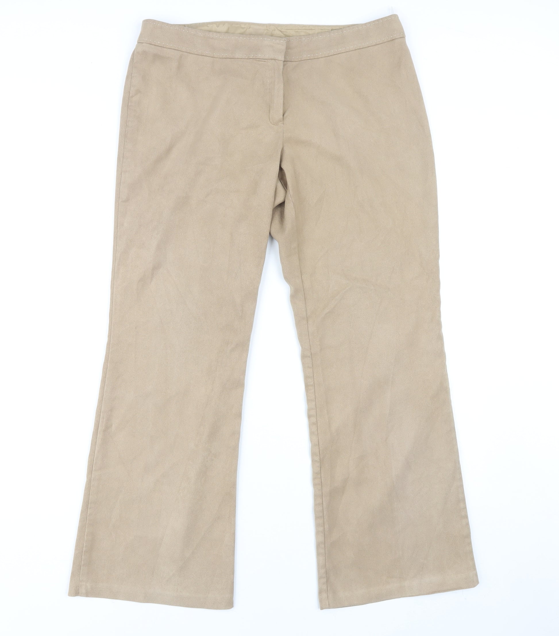 Discover the perfect blend of comfort and style with these elegant beige trousers from Marks and Spencer. Tailored for women, these trousers offer a flattering fit with their regular size 14 design. The flared leg style adds a touch of classic sophistication, making them ideal for various occasions. Crafted from a premium blend of polyester and elastane, they ensure a comfortable fit that moves with you throughout the day. These trousers are incredibly versatile, allowing you to transition effortlessly from a casual day out to a more formal setting. Whether pairing with a blouse or a casual top, these trousers provide a blank canvas to express your style. Despite being in excellent condition, they're priced attractively for anyone looking to enhance their wardrobe with a quality piece from Marks and Spencer.