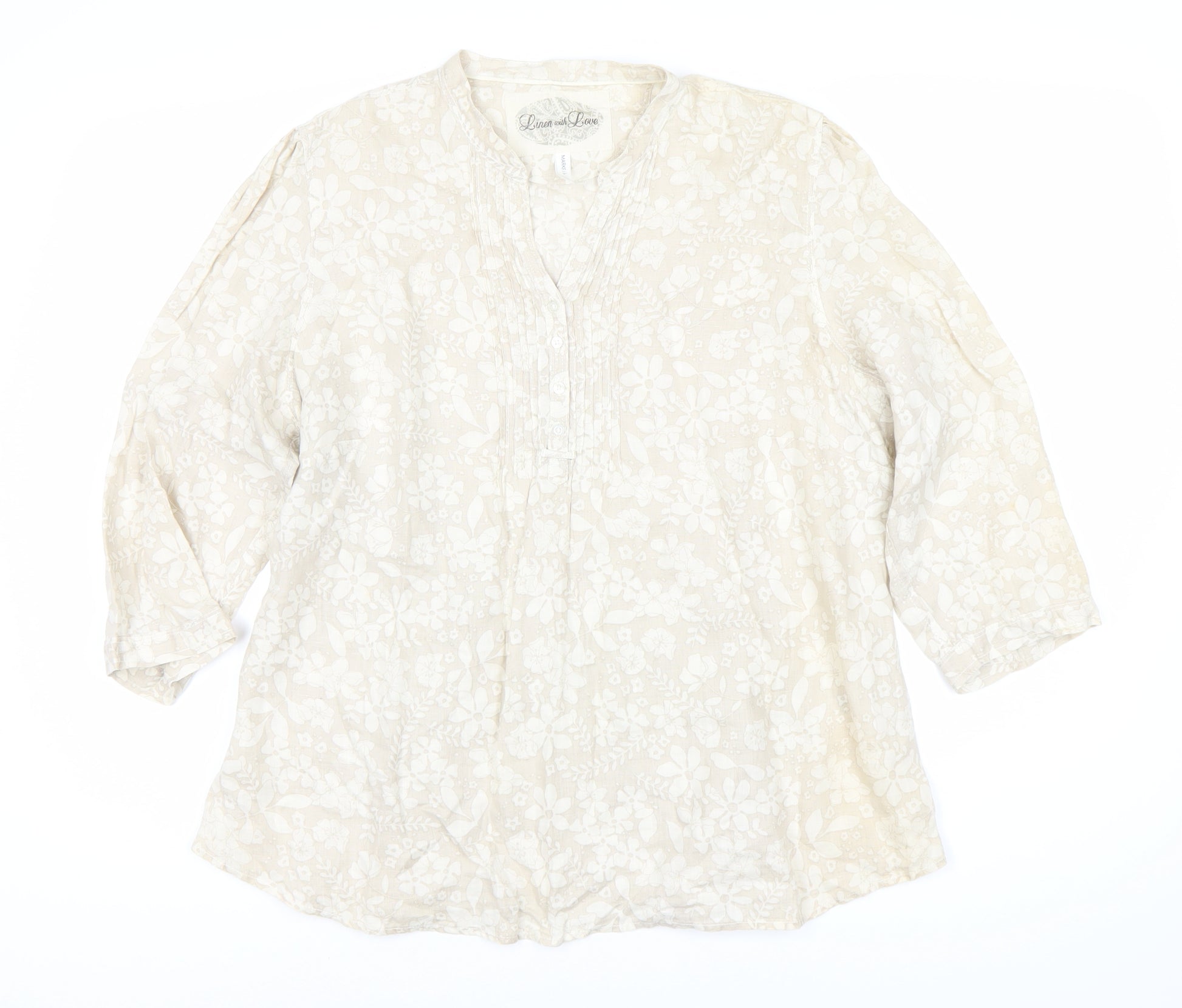 Discover elegance with this exquisite Marks and Spencer Women's Blouse crafted from 100% linen, offering breathability and comfort. The beige floral pattern provides a subtle yet sophisticated design, ideal for any casual or elegant occasion. Featuring 3/4 sleeves, this blouse is perfect for transitioning between seasons with ease. Designed specifically for women, it maintains a regular fit that complements various body shapes. Practical and stylish, this blouse is machine washable for easy upkeep. Pair it with jeans for a laid-back look or with tailored trousers for a refined appearance. Perfect for everyday wear or a special event, this blouse will become a versatile staple in your wardrobe.