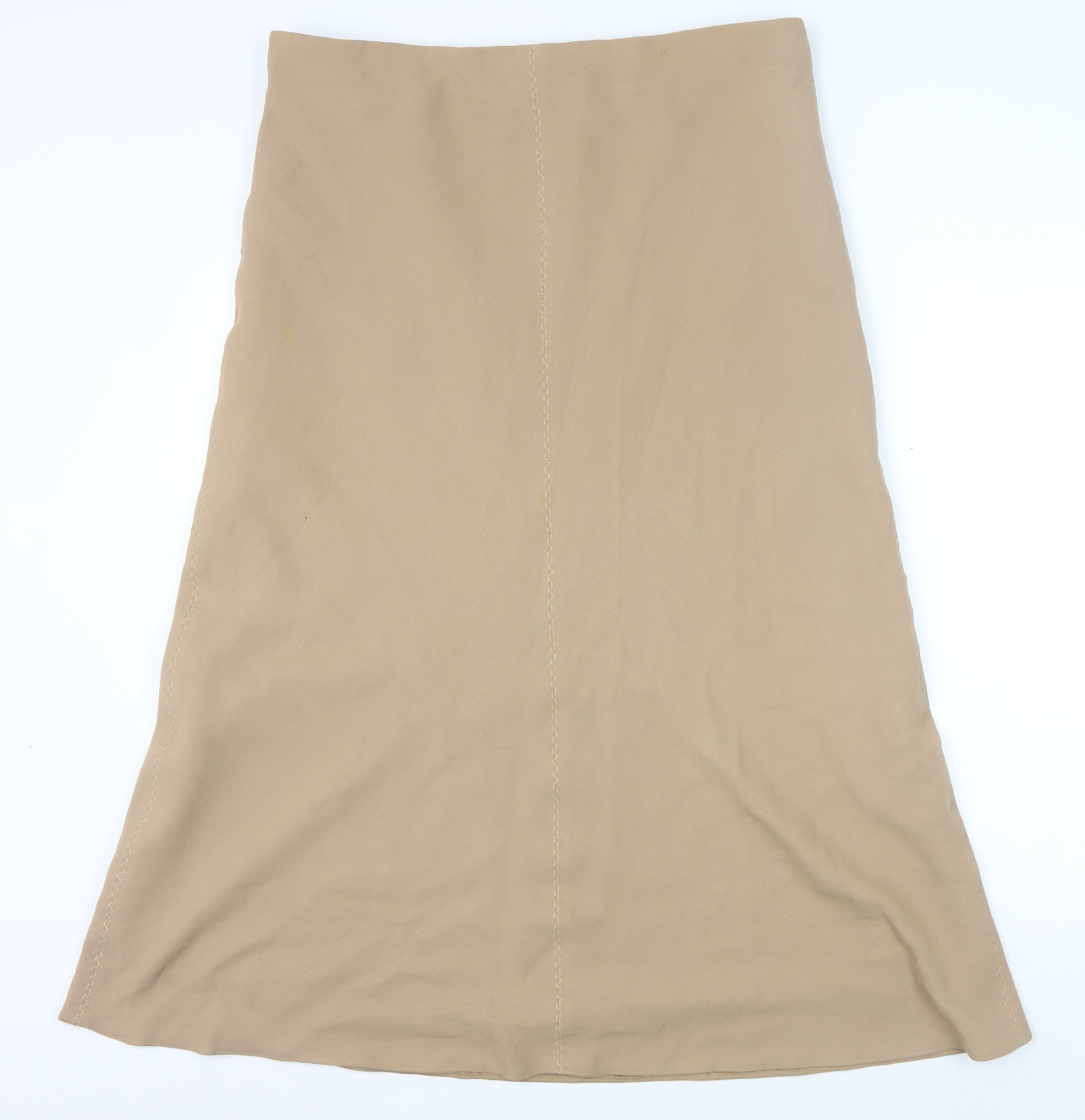 Step into timeless elegance with this versatile knee-length skirt from Marks and Spencer, a renowned name in fashion. Tailored for the modern woman, this beige skirt is an ideal blend of simplicity and style, perfect for various occasions. Crafted in size UK 16, it ensures a flattering fit with its regular size type. The all-season design makes it a staple for any wardrobe, transitioning seamlessly from spring to winter. Made from a comfortable blend of 90% polyester and 10% elastane, the skirt offers ease of movement and maintains its shape beautifully. Its mid-rise fit enhances comfort, making it suitable for day-long wear. The plain, no-pattern design provides a clean canvas for accessorizing, allowing you to pair it with vibrant tops or classic blouses for a chic look. Suitable for both casual outings and business settings, this skirt is versatile enough to adapt to various themes and occasions. Easy to care for, it is machine washable—perfect for the active lifestyle. Despite being a pre-loved piece, its excellent condition speaks volumes about its quality and durability. Embrace timeless style with this essential Marks and Spencer skirt, an embodiment of understated elegance and practical design.