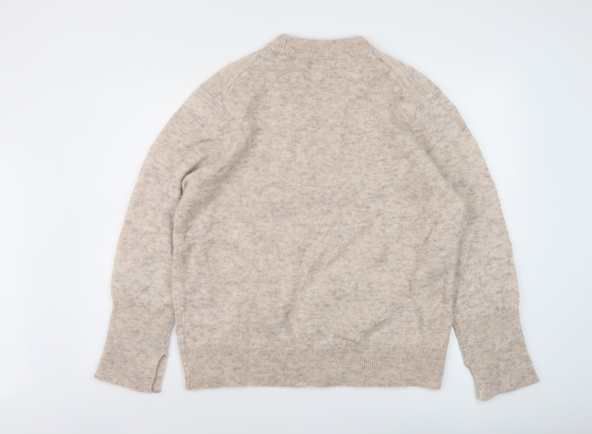 Womens Beige Mock Neck Polyester Pullover Jumper Size L