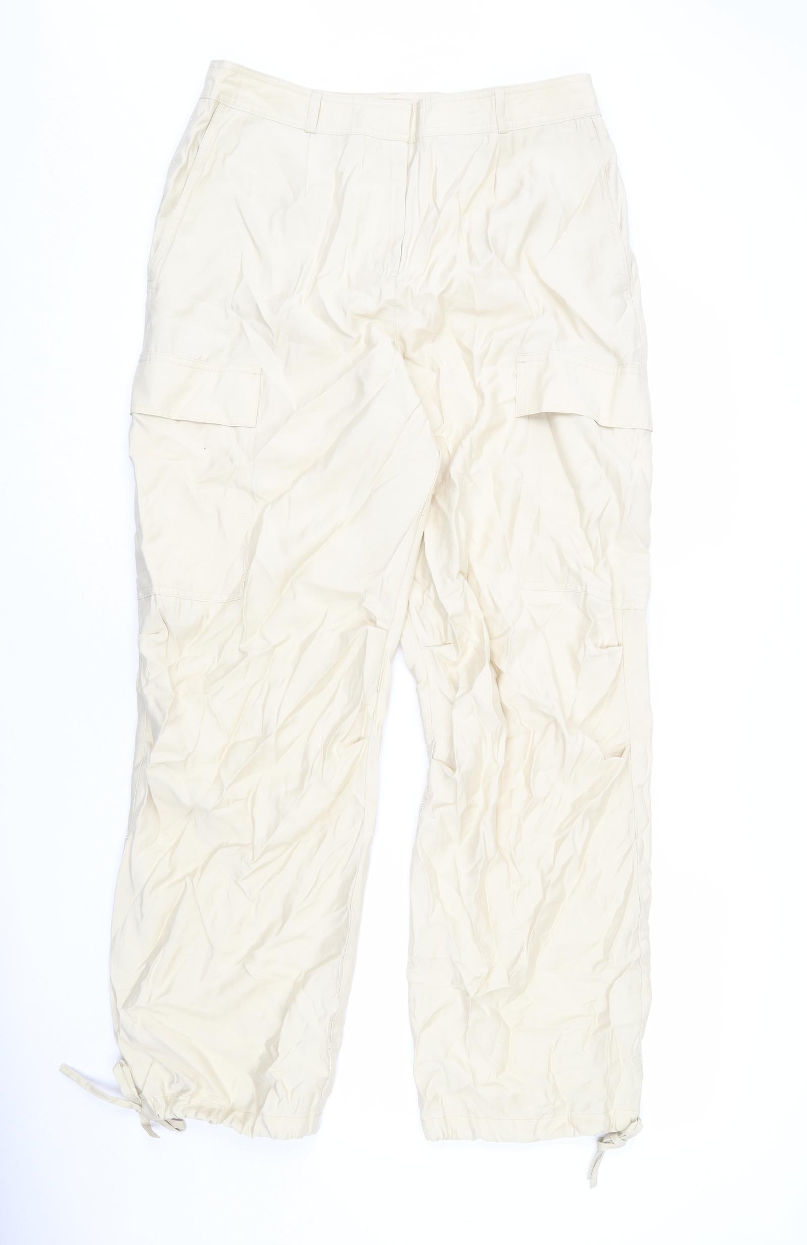 Womens Beige Modal Cargo Trousers Size 14 L30 in Regular Zip - Adjustable Hems, Long Length
