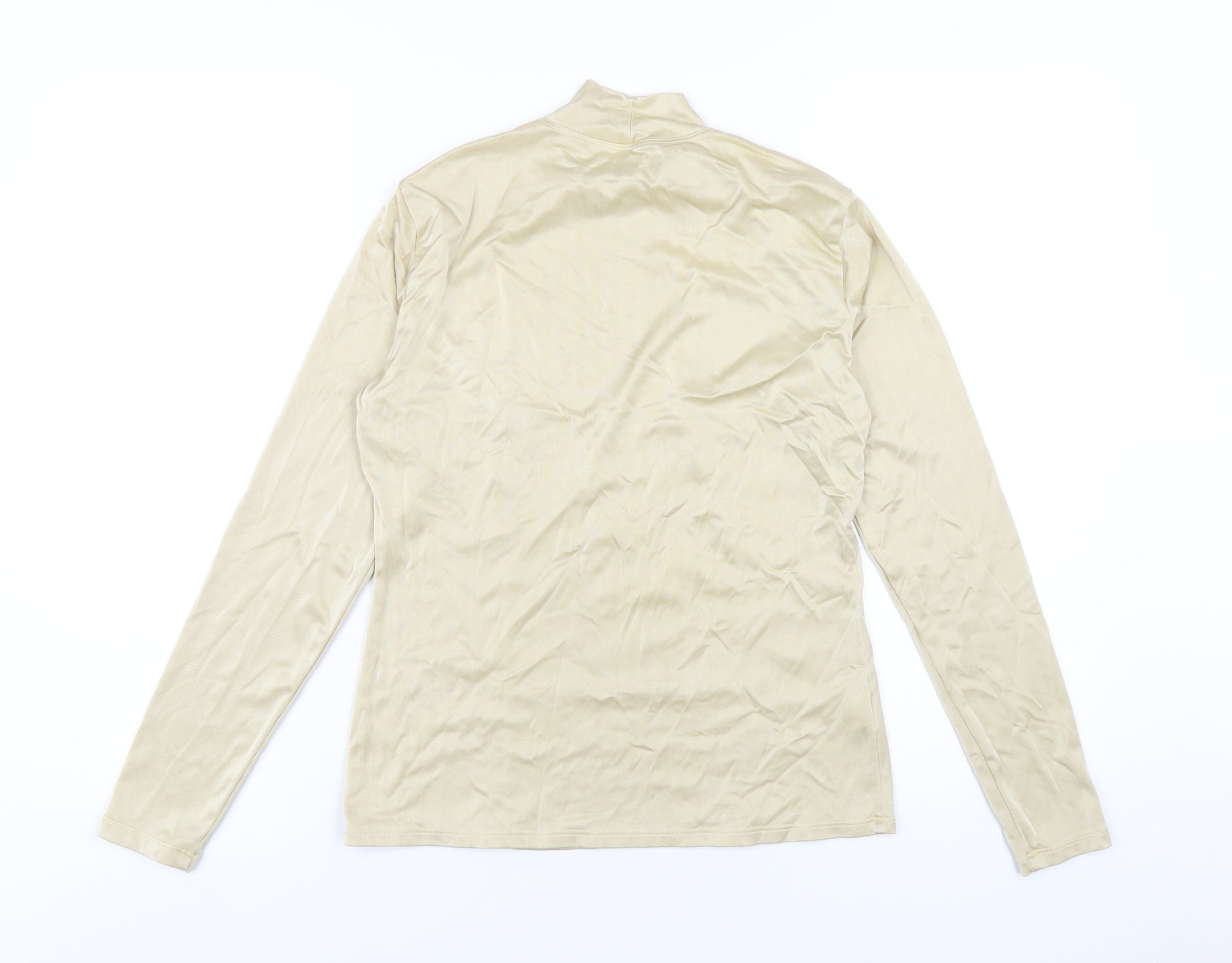 Womens Beige Nylon Basic T-Shirt Size 14 Mock Neck