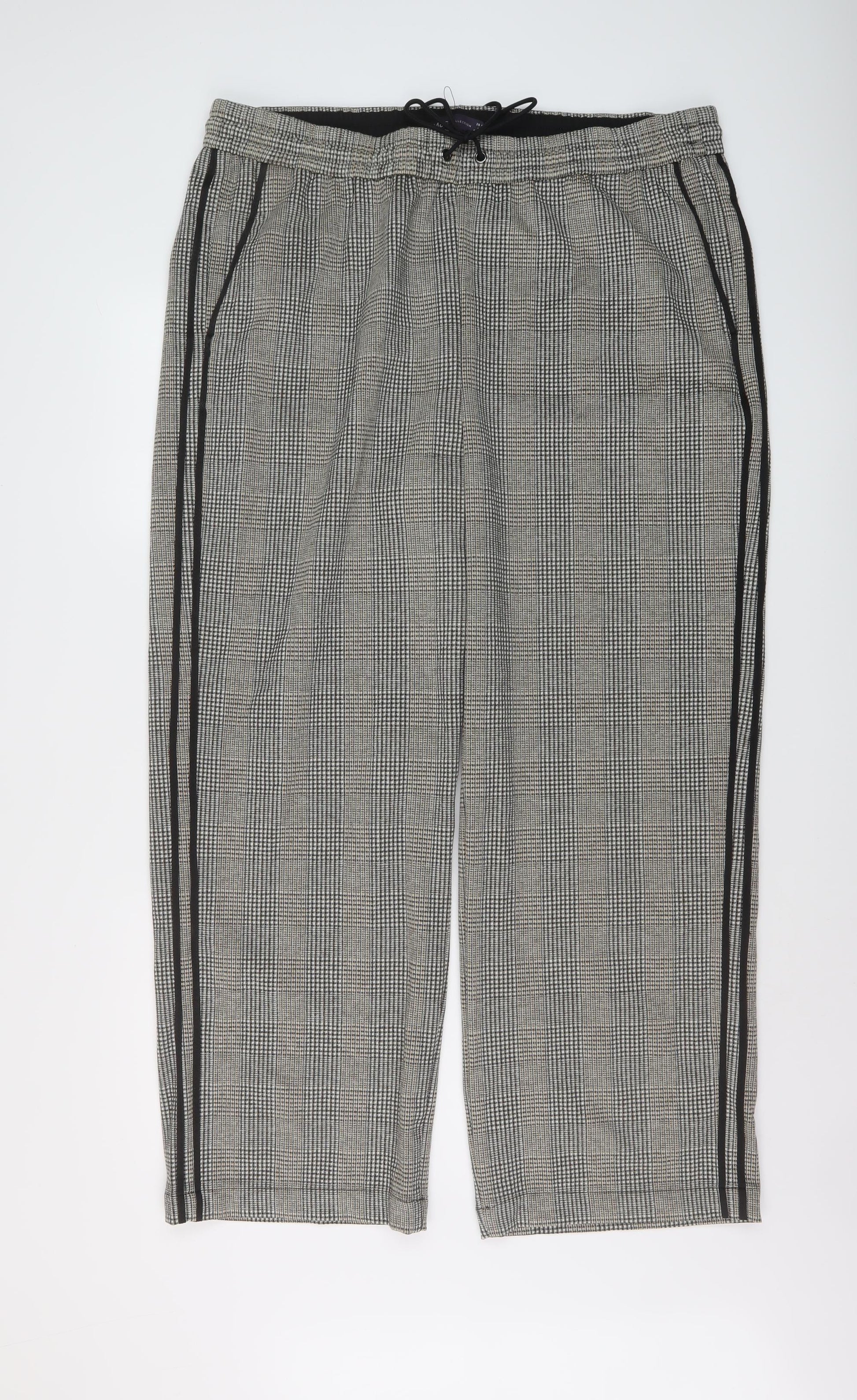 Womens Beige Plaid Polyester Trousers Size 20 L28 in Regular Drawstring