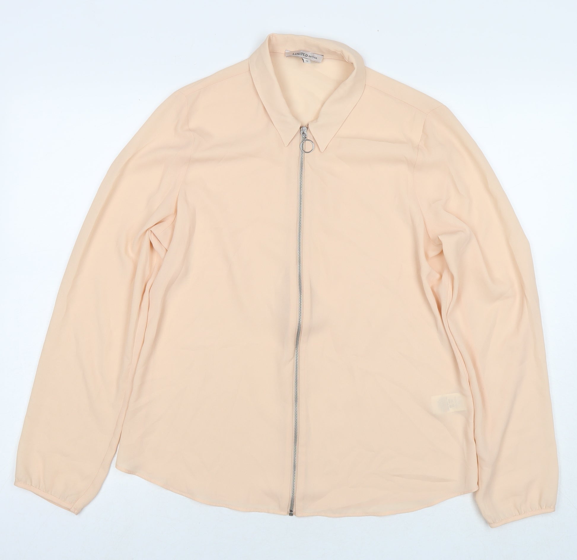 Womens Beige Polyester Basic Blouse Size 12 Collared