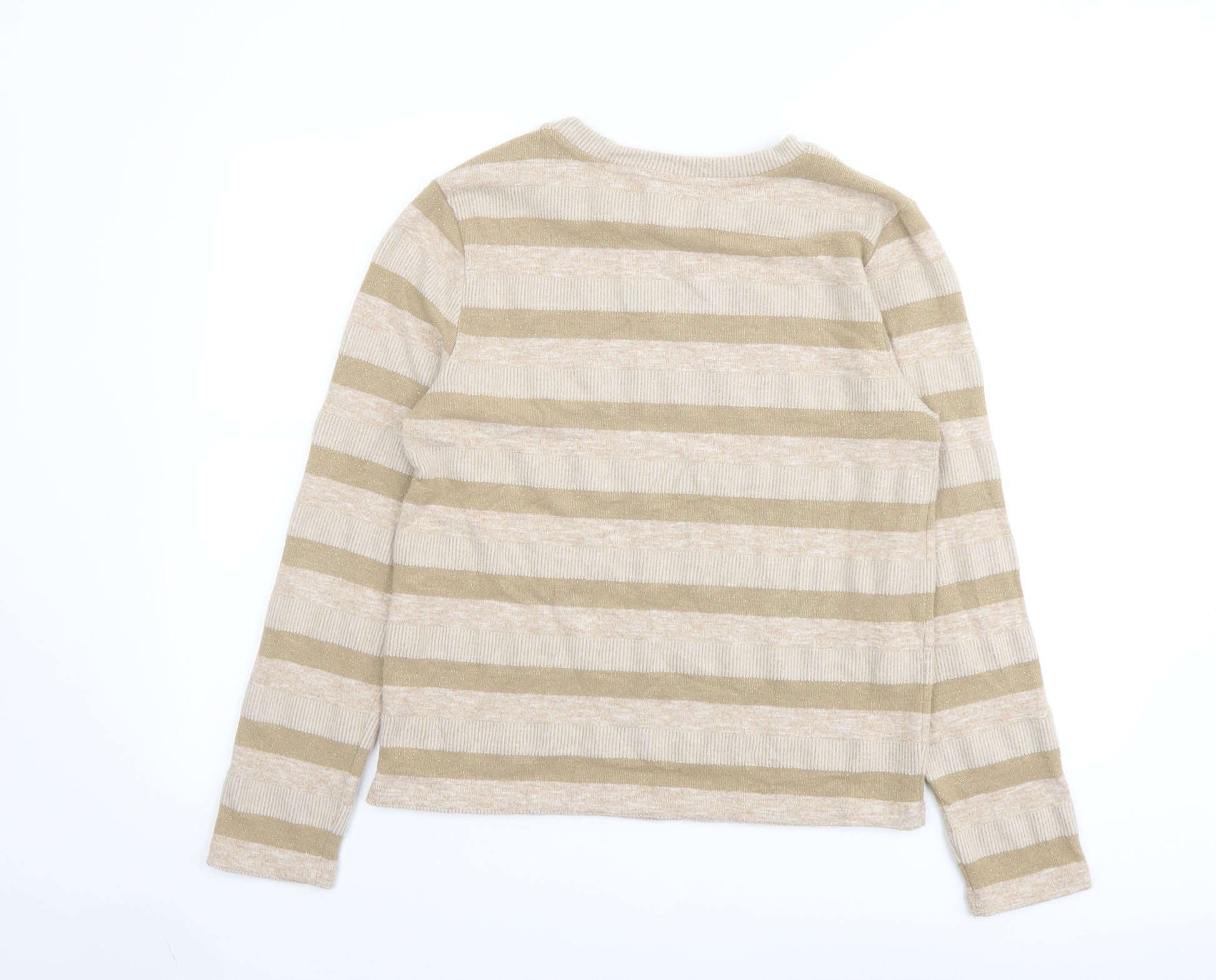 Womens Beige Round Neck Striped Polyester Pullover Jumper Size 14