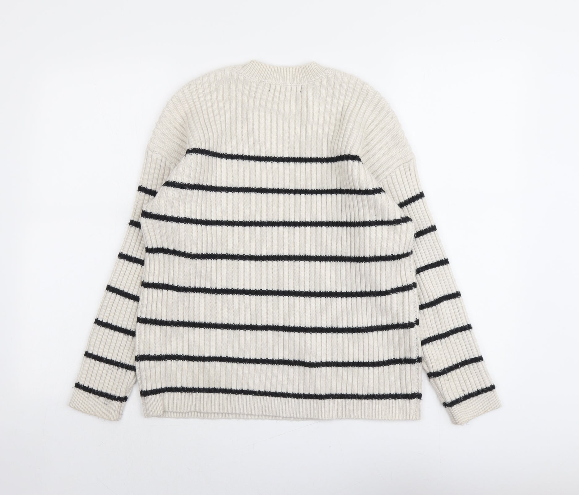 Womens Beige Round Neck Striped Polyester Pullover Jumper Size M