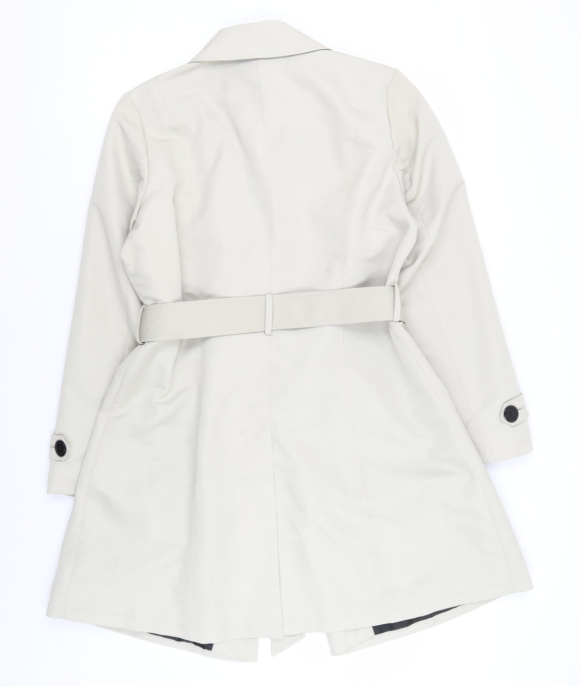 Explore timeless elegance with this Marks and Spencer Women's Trench Coat, perfect for adding a sophisticated touch to your wardrobe. Crafted from durable polyester, this trench coat features a classic beige colour, making it versatile and easy to match with any outfit. Designed for regular fit, it comes in size 14, catering to a wide range of body types. The coat is belted, offering a flattering silhouette while the button accents add a touch of detail. With long sleeves and a button closure, this coat is suitable for slightly cooler weather and can easily transition across seasons. The polyester lining ensures comfort and durability, while the machine-washable fabric makes it a practical choice for everyday wear. This trench coat is in excellent condition with no visible wear or damage, making it a fantastic addition to your clothing collection. Whether you're dressing up for a business meeting or looking for stylish outerwear for casual outings, this Marks and Spencer trench coat is a standout choice.