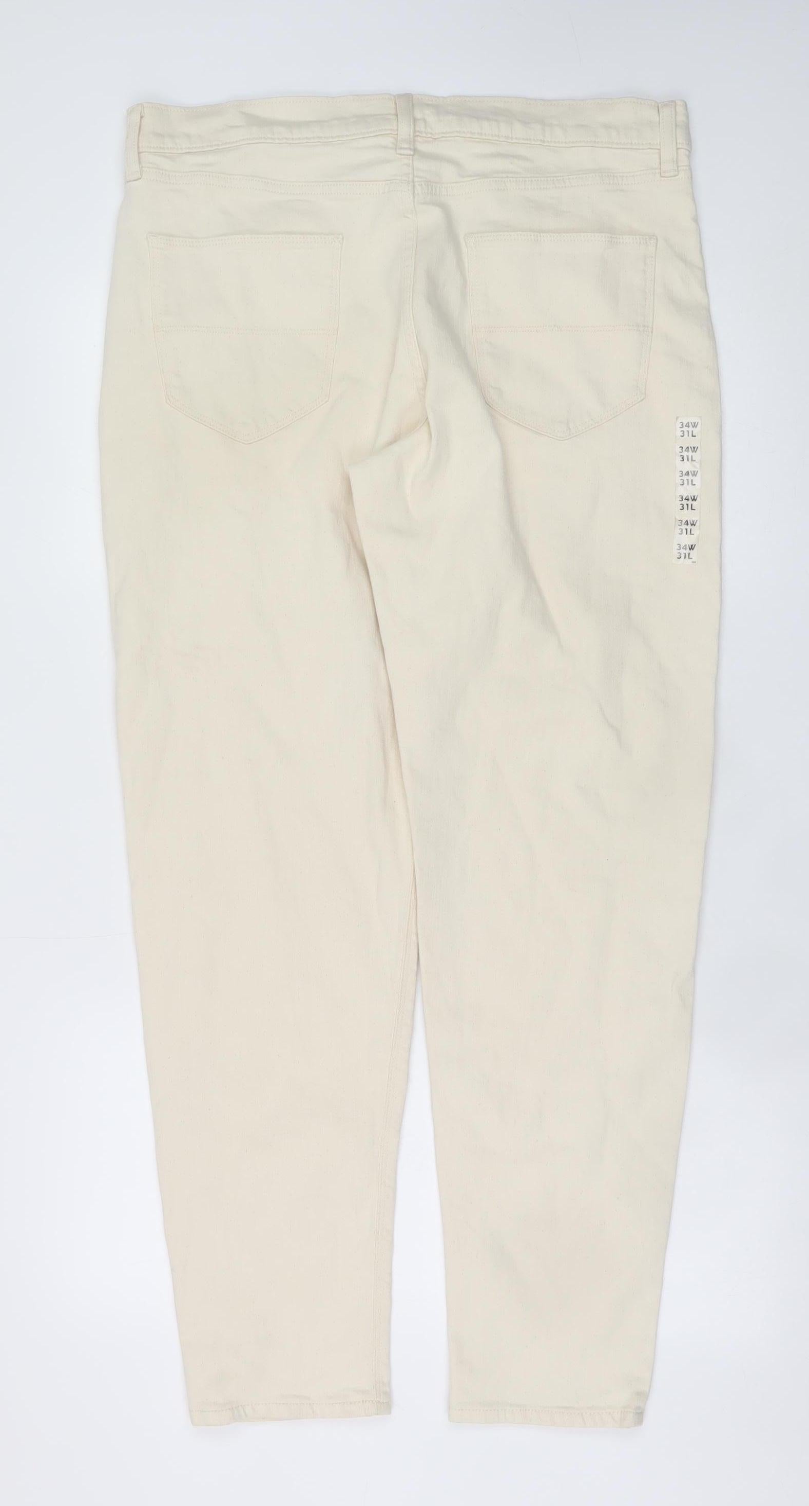 These Marks and Spencer Women’s Beige Straight Leg Jeans offer both comfort and sophisticated style, ideal for any casual or semi-casual occasion. Crafted from a premium cotton blend with a touch of elastane, these jeans provide a gentle stretch for an easy, flexible fit. The soft beige tone gives a versatile edge to any wardrobe, effortlessly complementing neutral or vibrant tops alike. With a flattering mid-rise waist and a classic straight leg silhouette, they deliver enduring appeal while providing everyday practicality.Cut in a Regular fit, these jeans feature a traditional 5-pocket design and are secured with a sturdy zip and button fastening. The 34-inch waist paired with a 31-inch inside leg ensures a flattering fit for a comfortable everyday wear. The denim fabric has a lightweight, slightly structured texture, allowing for easy movement and a polished appearance. Designed for convenience, these jeans are machine washable and quick to maintain, avoiding the need for cumbersome dry cleaning.The subtle light wash shade makes them a timeless staple that transitions effortlessly through Spring, Summer and Autumn. Thoughtfully crafted by Marks and Spencer, these jeans emphasize sustainable garment care with a ‘Think Climate’ wash label, underlining both quality and responsibility. Perfect for a relaxed weekend look or dressed up with a smart blouse, these jeans promise dependable comfort and enduring style. Whether paired with flats for daytime or heels for evening wear, they’re an essential item every modern wardrobe should include. In excellent pre-owned condition with minimal signs of wear, these jeans remain clean, crisp and ready to wear—ideal for those seeking both quality and value.