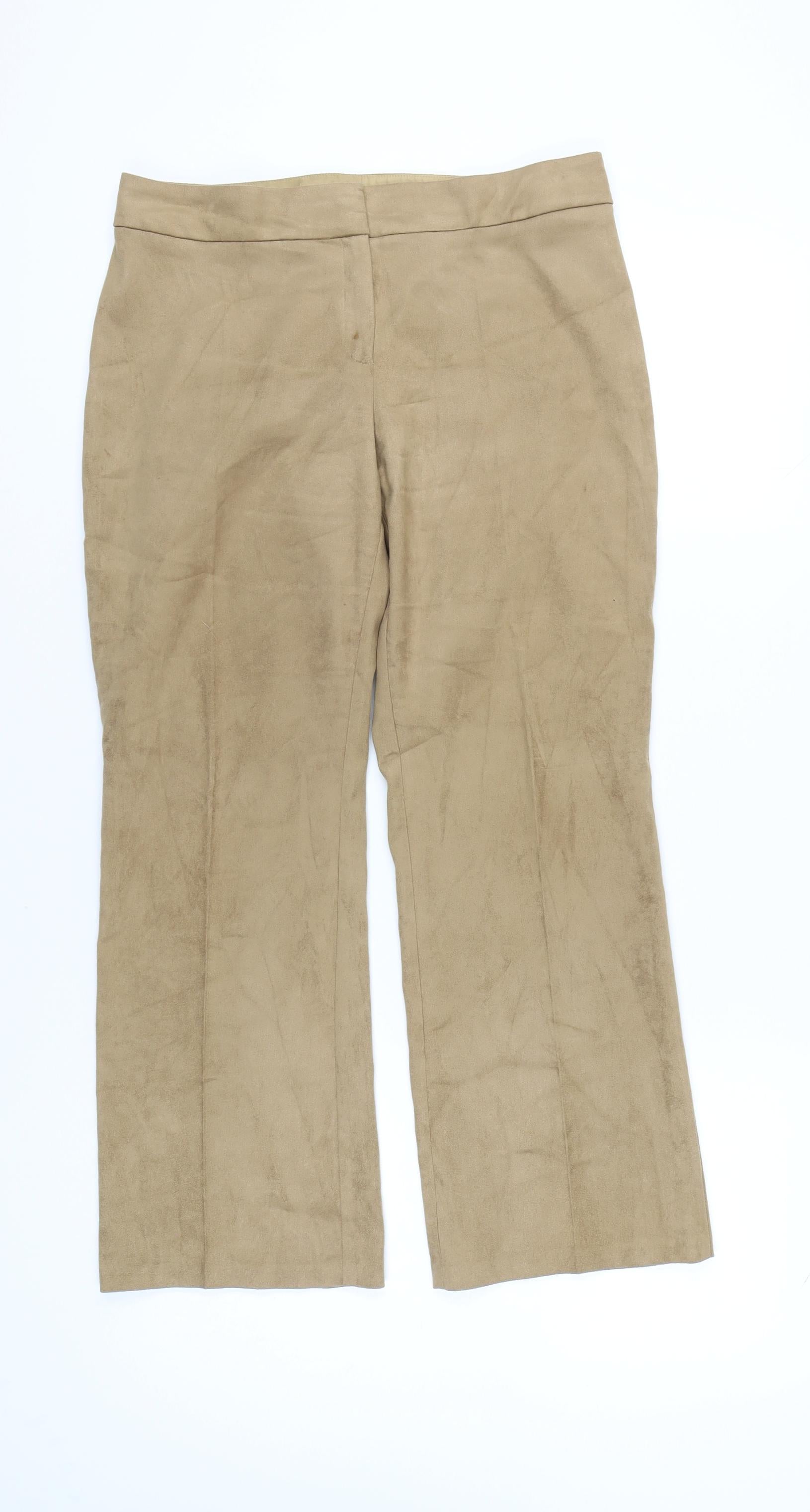 Step out in style with these classic beige trousers from Marks and Spencer, designed specifically for women who appreciate timeless fashion and comfort. Crafted in Morocco, these trousers showcase the reliability and elegance that the brand is renowned for. Made from a high-quality blend of 97% polyester and 3% elastane, they provide just the right amount of stretch to ensure a perfect fit while maintaining their shape, making them ideal for day-long wear.The straight leg design offers a sleek and versatile look, perfect for both casual and more formal occasions. Whether you're heading to the office or out for a casual day about town, these trousers will be your go-to choice. The size 12 fit is tailored to provide comfort without sacrificing style, ensuring you feel confident no matter where you are.Beige is a versatile colour that pairs well with a multitude of other shades, allowing you to mix and match effortlessly with your current wardrobe. The trousers feature a simple no-pattern design, making them an ideal canvas for accessorising or pairing with your favourite tops and jackets. They are machine washable, ensuring that caring for them is as easy as slipping them on.While in excellent pre-loved condition, these trousers are absent of original sales tags, indicating minimal usage and wear, providing great value for an essential wardrobe staple. Upgrade your wardrobe with these must-have trousers that merge comfort with style seamlessly.