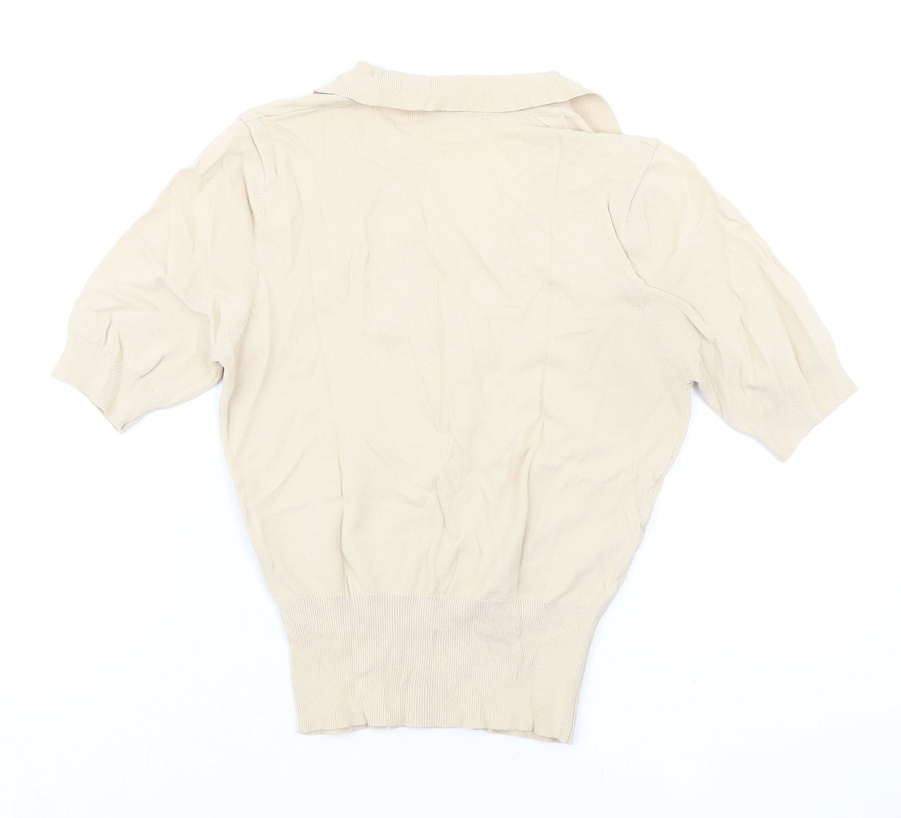 Womens Beige Viscose Basic Blouse Size 10 Collared