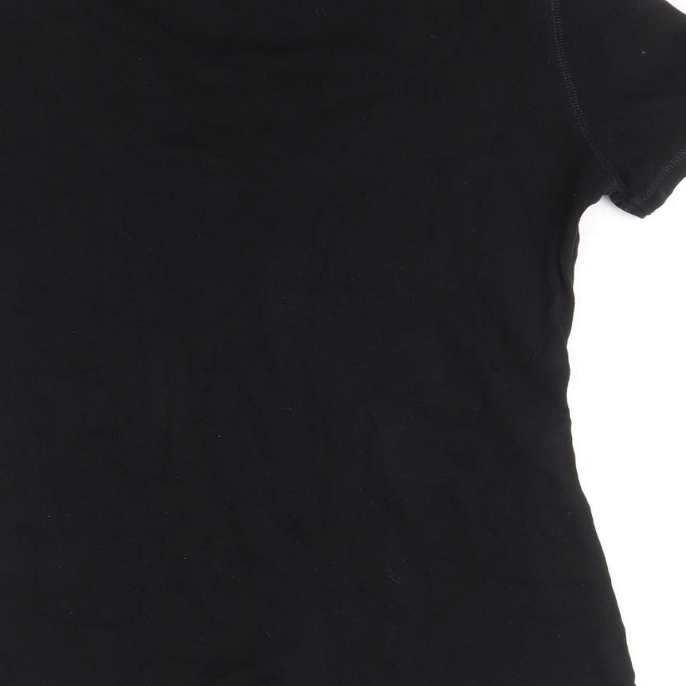 Womens Black 100% Cotton Basic T-Shirt Size 12 Scoop Neck