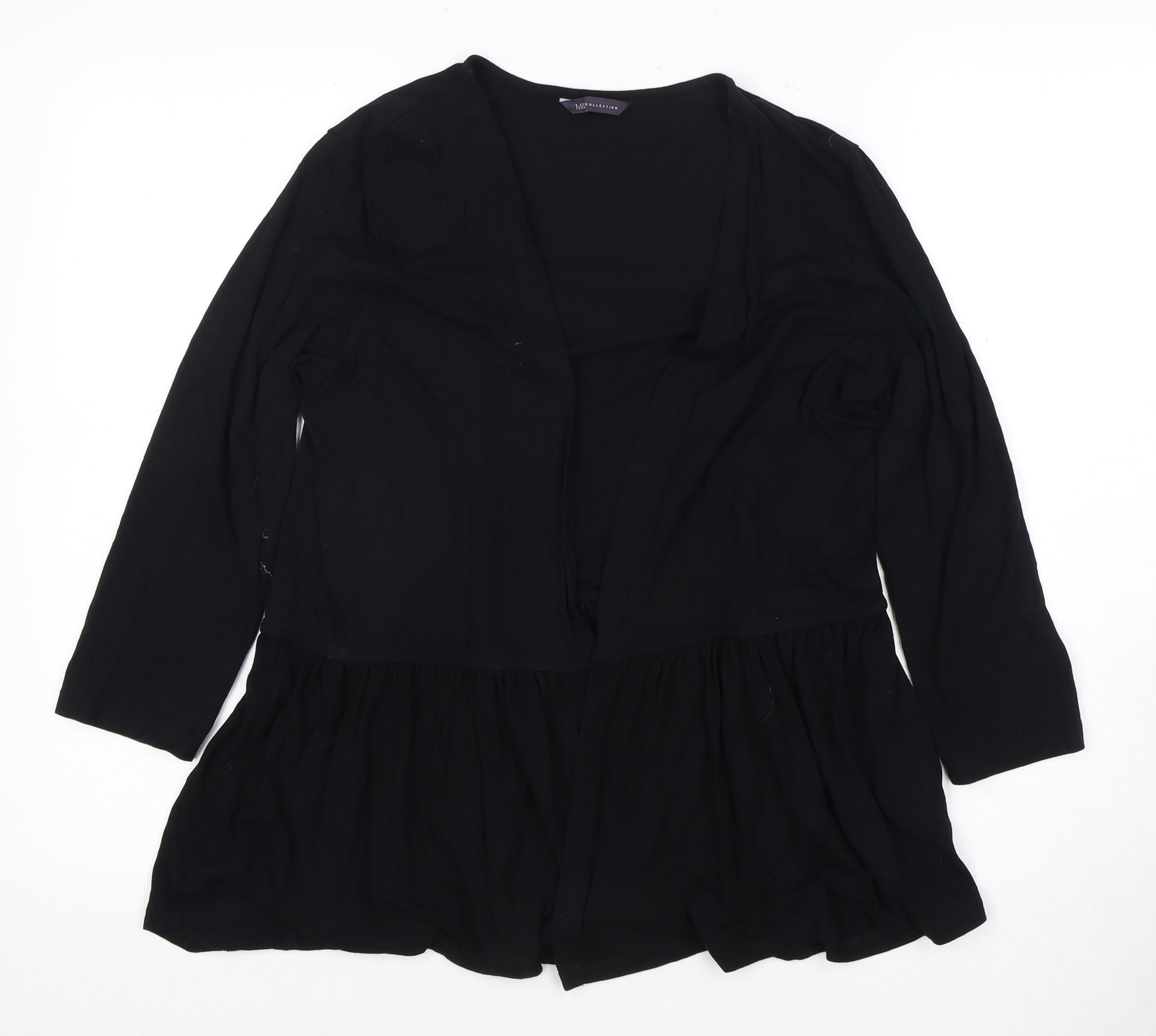 Discover the sleek elegance of this Marks and Spencer top, perfect for any occasion. Made with a soft blend of viscose and elastane, this black top offers both comfort and style with its flattering V-neck and three-quarter sleeves. Ideal for a versatile wardrobe, this top can easily transition from casual to business settings. Its excellent condition ensures you'll enjoy it in your wardrobe for seasons to come.