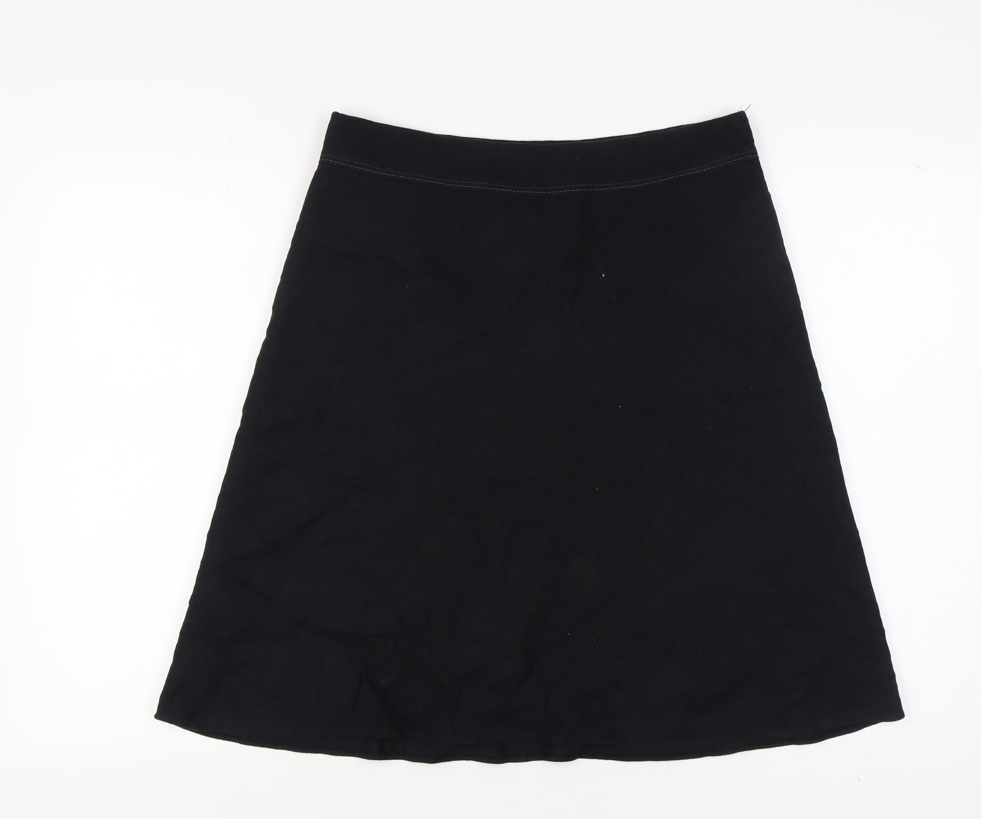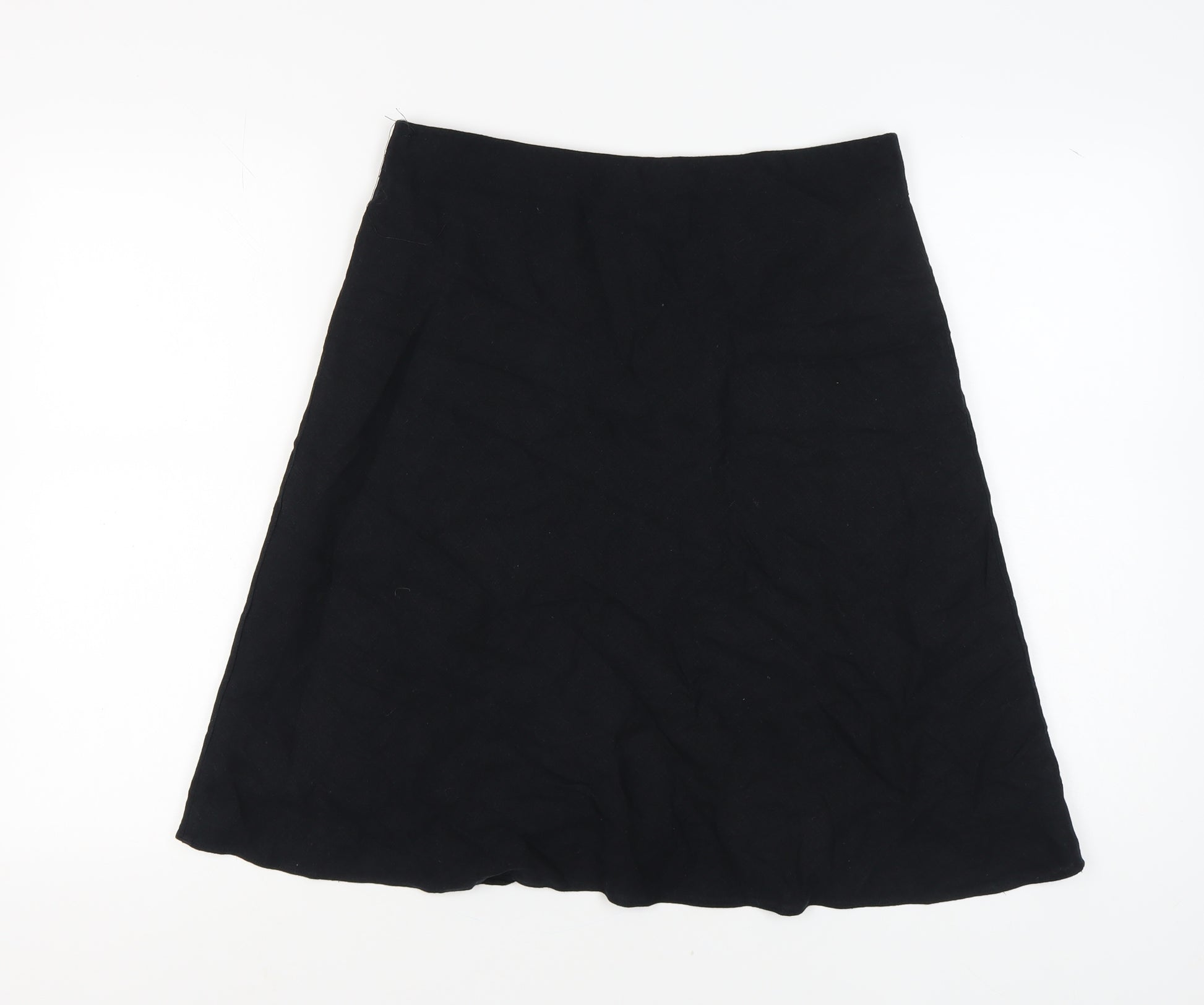 Explore elegance and timeless style with this Marks and Spencer A-Line skirt, crafted in a classic black hue that effortlessly complements any wardrobe. Designed for women who appreciate both sophistication and comfort, this knee-length skirt fits seamlessly into your everyday attire. Made from a blend of 56% linen and 44% viscose, it offers a breathable yet structured finish, perfect for enhancing your silhouette. The gentle flow of the A-Line design ensures a flattering fit, while the absence of visible patterns keeps the focus on your personal style. Ideal for both casual outings and more formal occasions, this skirt is versatile enough to match with various tops and accessories. Its regular size 14 design promises comfort, with machine-washable care ensuring convenience for a busy lifestyle. Whether you're dressing up for a lunch date or heading to the office, this skirt adds a touch of elegance to your ensemble. It's pre-owned in excellent condition, showing minimal signs of wear and promising you many more opportunities to dazzle. Dive into a refined fashion experience and let this Marks and Spencer skirt redefine your wardrobe basics.