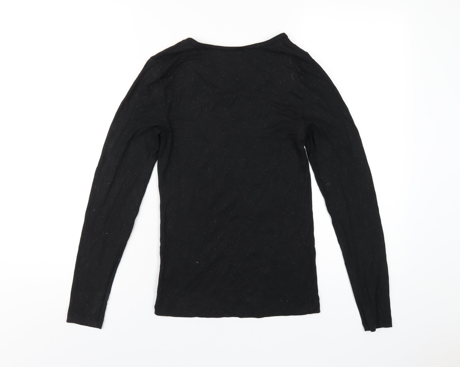 Womens Black Acrylic Basic T-Shirt Size 12 Scoop Neck