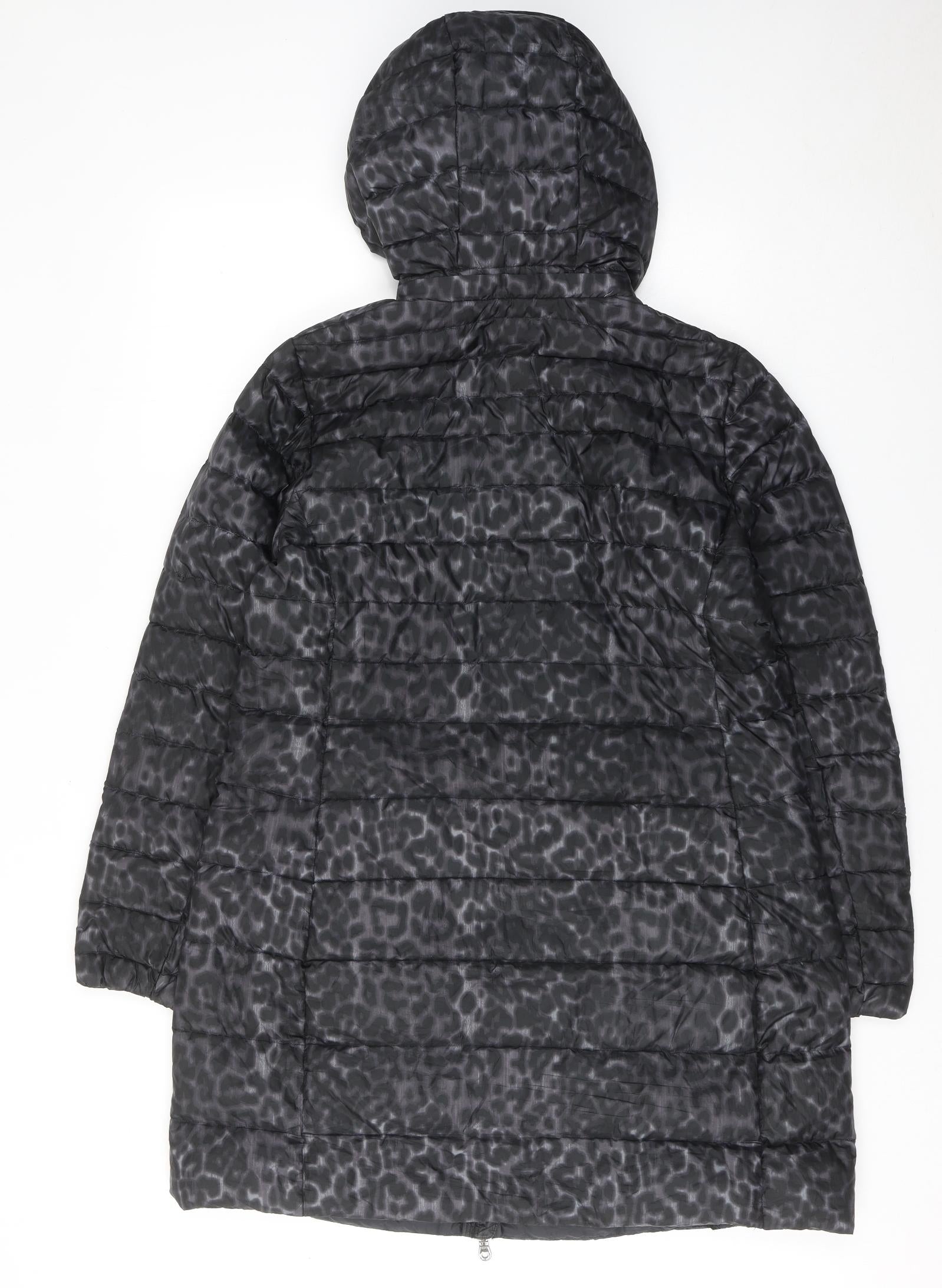 Womens Black Animal Print Quilted Coat Size 16 Zip - Leopard Pattern